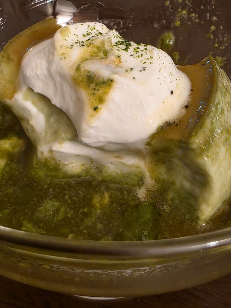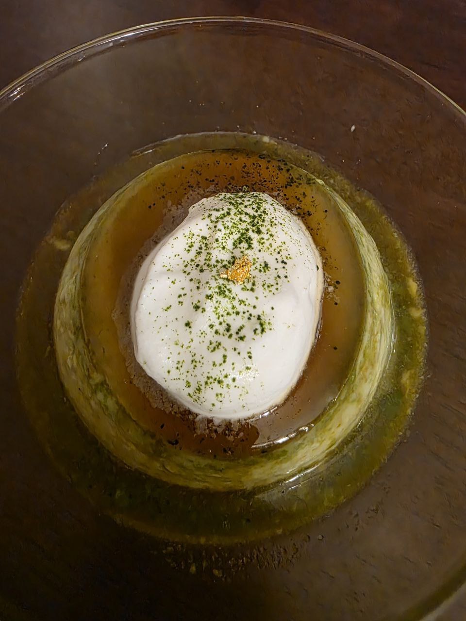 말차의 구수하면서 향긋한 풍미를 찰랑거리는 품에 간직한 채 푸딩의 부드러운 우유맛이 먼저 입안으로 들어와 으스러지면서 밑에 깔려있던 텁텁함과 약간의 쌉쌀함과 부드러움으로 말차 무스가 미끄러져 들어온다. 하지만 그게 끝이 아니다, 설탕이 갈색으로 그을려 구워진 캐러멜이 말차가루와 만난 달콤한 말차캐러멜 시럽이 혀를 촉촉하고 꿀처럼 감싸며 탱글거리는 부드러움에 이은 말차와 캐러멜의 향기를 혓바닥과 그 미뢰에 깊숙이 심는다.