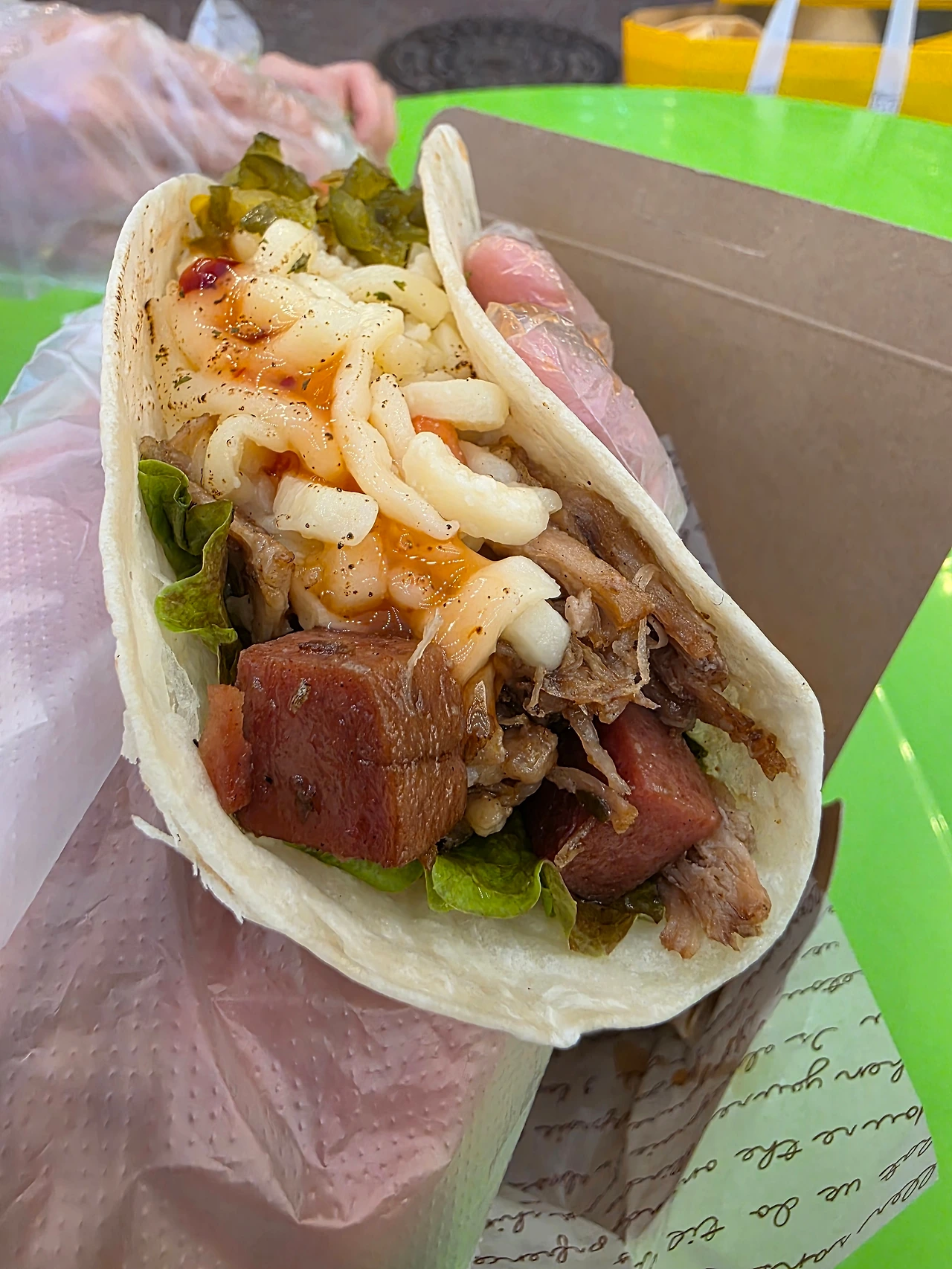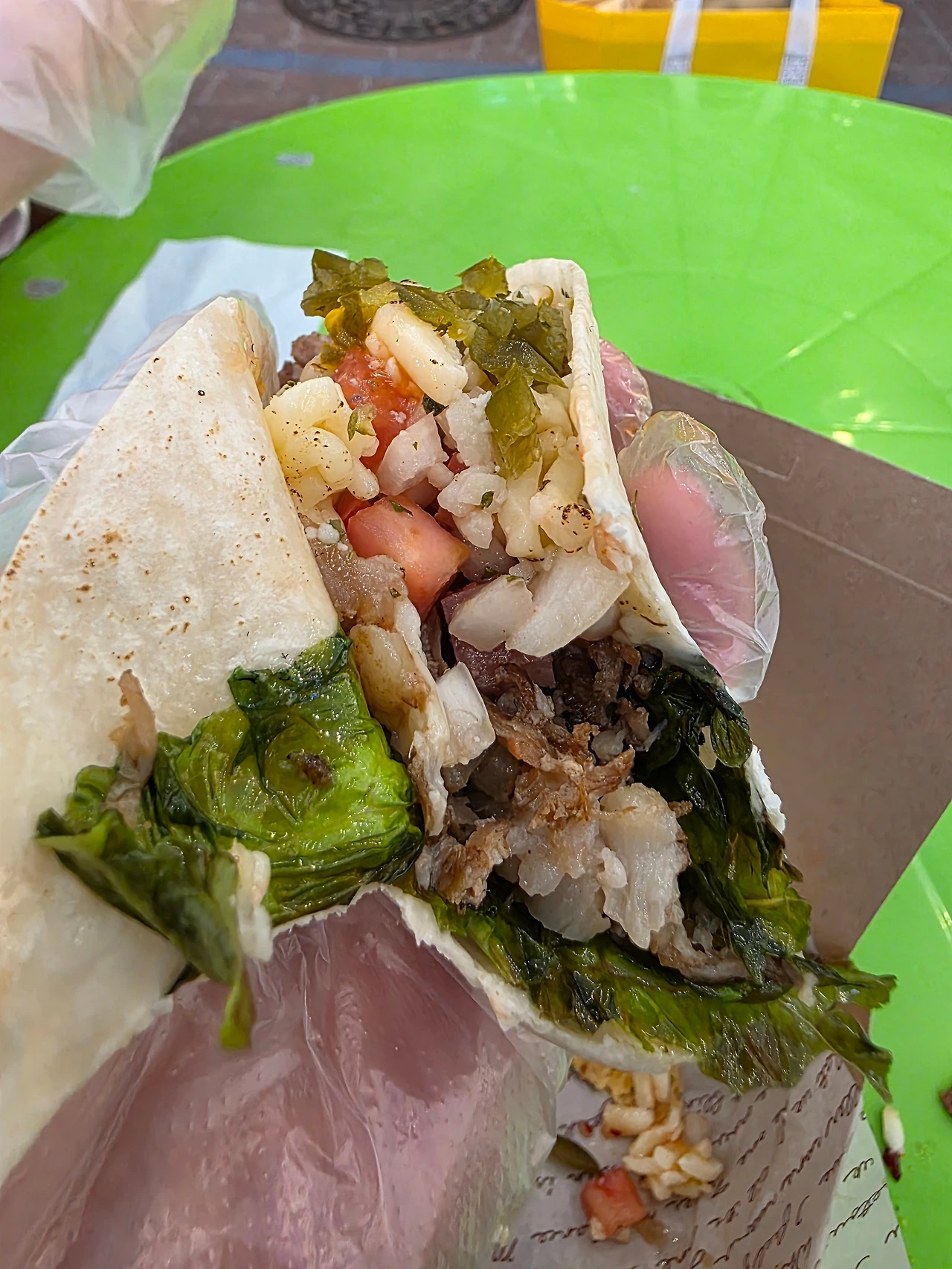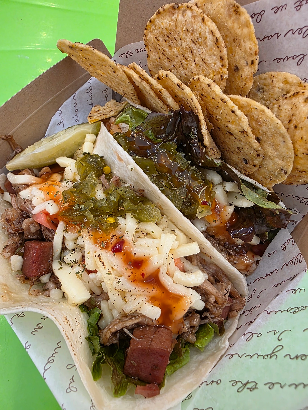 일반적으로 먹을 수 있는 타코 메뉴 외에도 사람들이 잘 아는 짭짤 매콤한 타코 과자에 타코 재료들을 넣어서 먹는 도리로코까지, 지나가면서 노상 식탁에 앉아 맥주 한 캔이나 주변에서 생맥주 한잔 내려서 같이 먹으면 훌륭한 메뉴렸다.