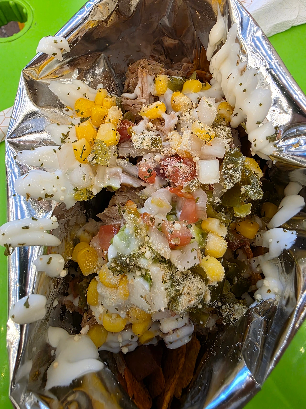 김고로는 두, 세입에 고깃국물만 남기고 사라져 버린 타코가 아쉬워 타코칩 과자에 타코 토핑들을 올려 버무려주는 '도리로코'를 주문해서 한번 더 비슷한 맛을 음미했다. 과자의 매콤 달콤한 양념이 이미 강하기 때문에 원래 타코를 먹던 맛보다 자극적이지만, 오히려 맥주가 한잔 있다면 더 잘 어울리겠다는 생각이 들었다.