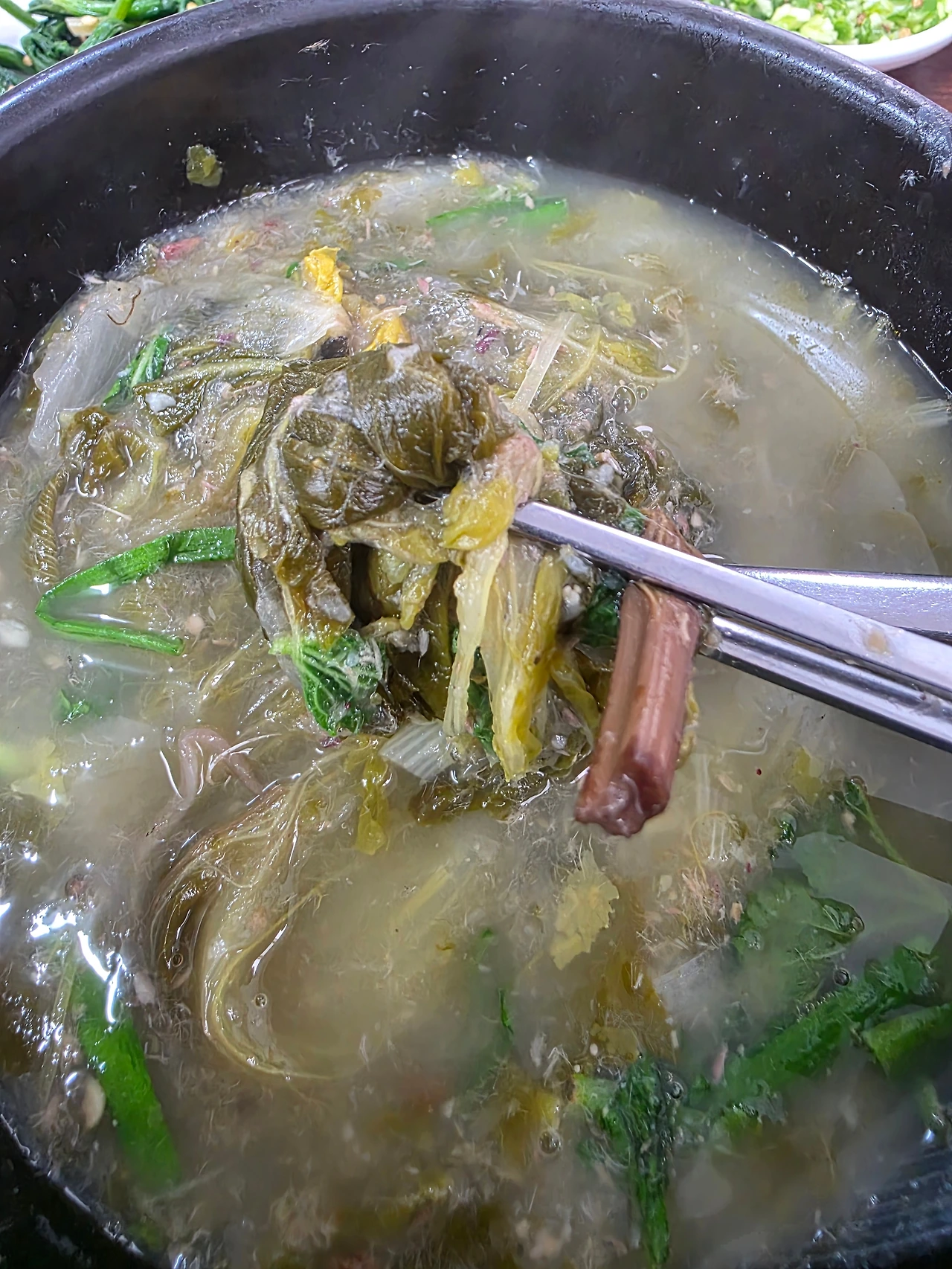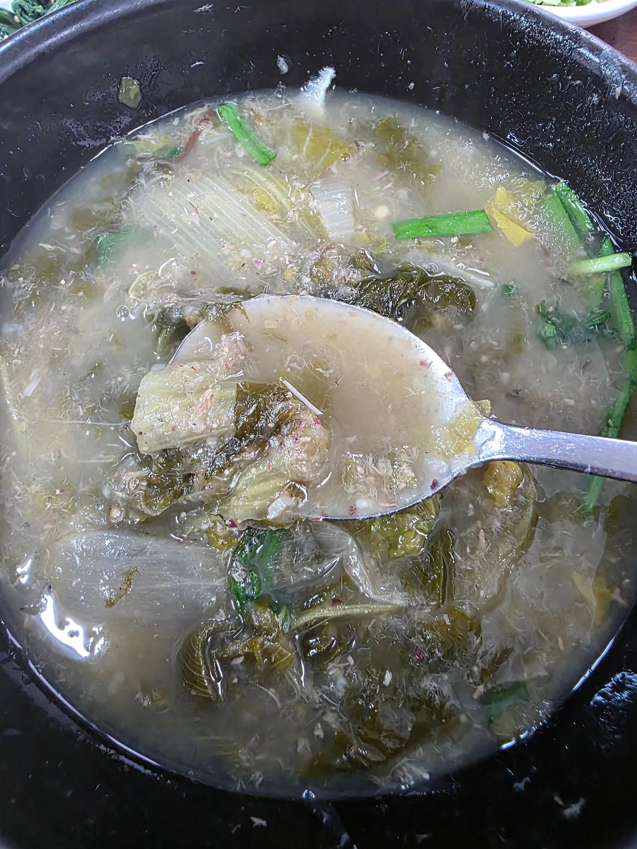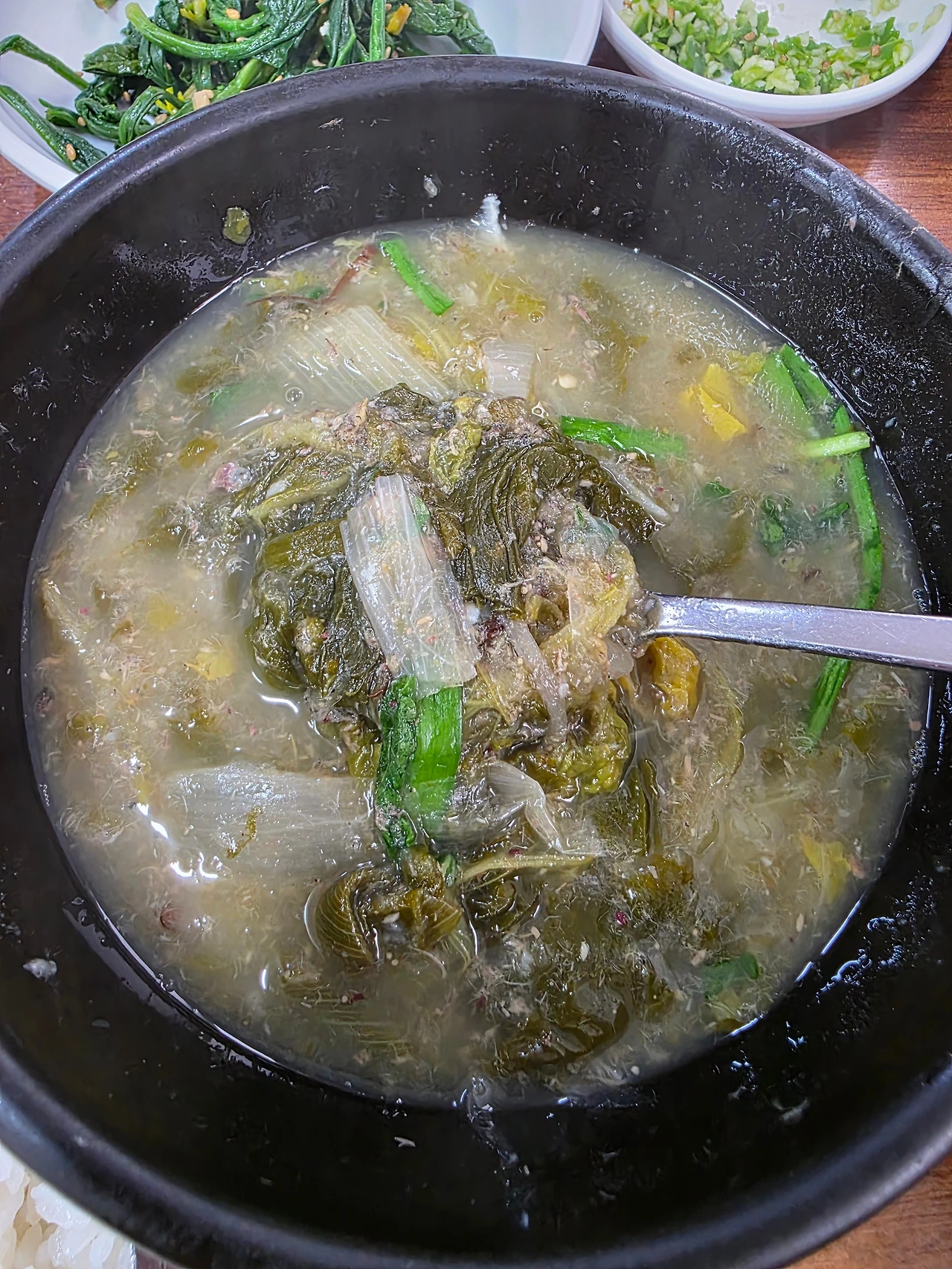 시래기가 가득한 된장 국물에는 잘게 갈린 미꾸라지가 띄엄띄엄 보인다, 김고로가 숟가락으로 크게 떠니 걸쭉한 질감이 묵직하게 올라온다.