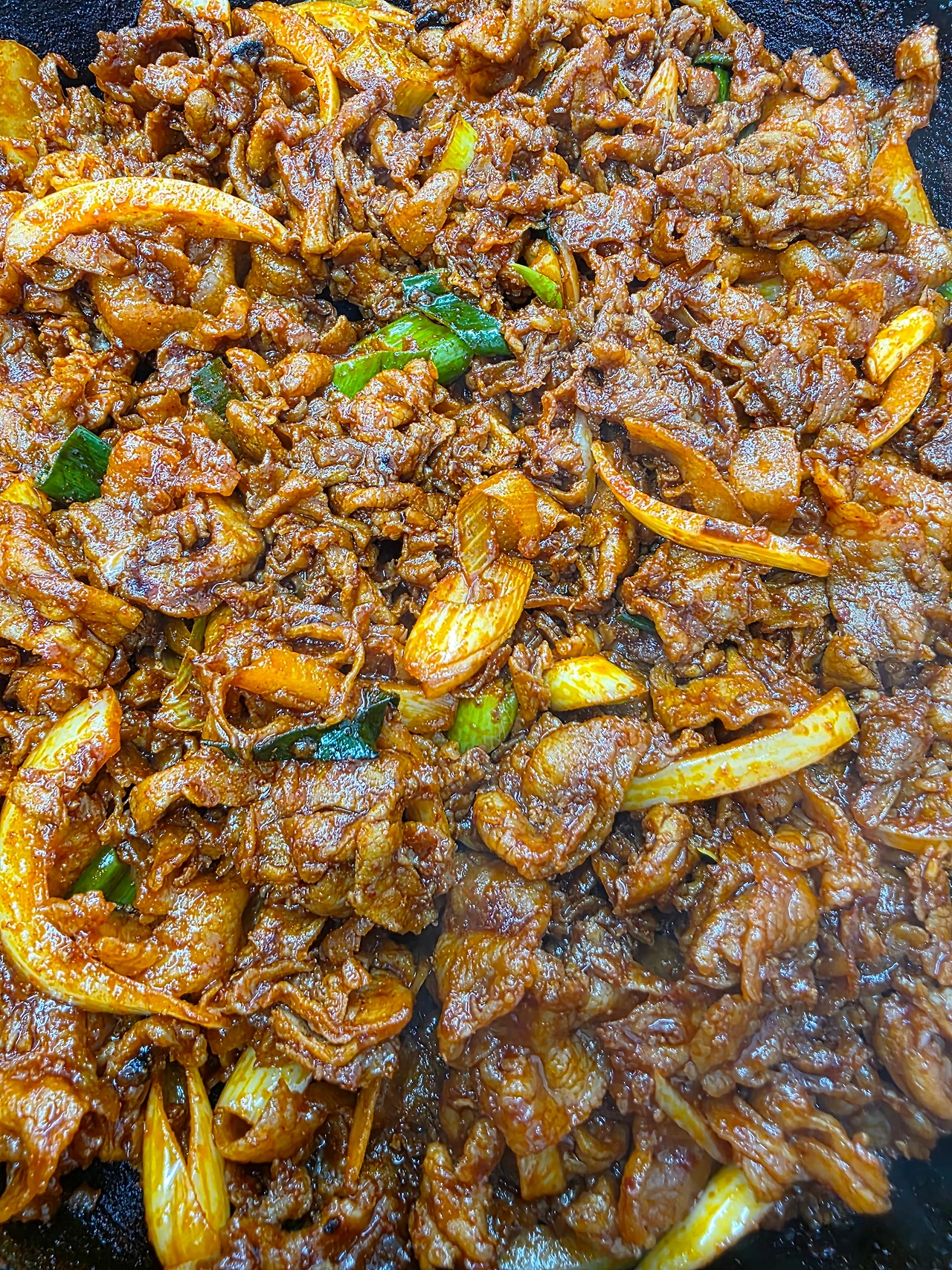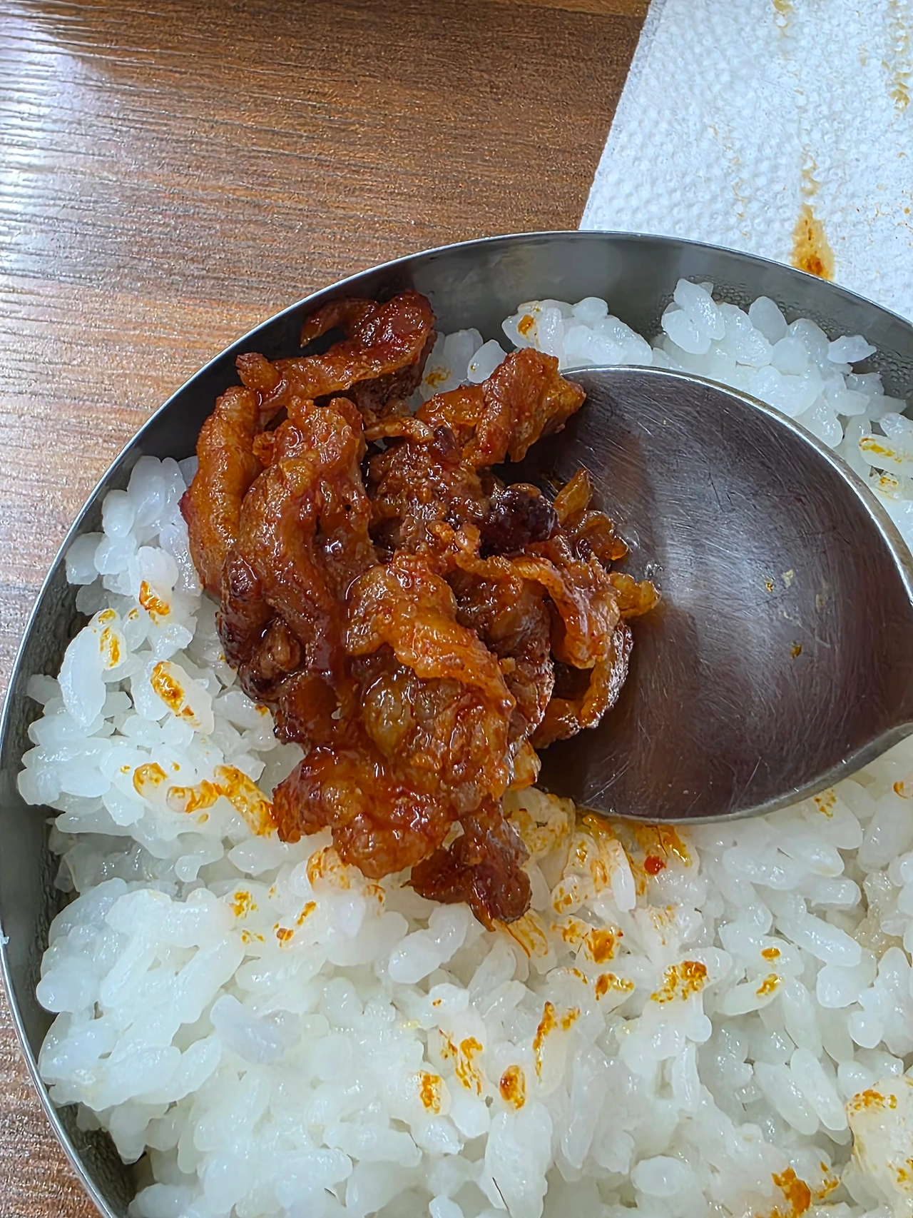 얇은 고기가 바싹 구워져서 뻑뻑하거나 질긴 식감이 없다, 야들야들하고 쫄깃한 돼지고기(식감 때문에 전지인지 후지인지 구분이 어렵다, 돼지불고기는 주로 후지를 사용하기는 하지만 말이다)이기에 씹으면 씹을수록 튀어 오르듯 쫄깃하고 육질 사이에서 알싸한 달콤함과 진득한 고기맛이 새어 나온다.
