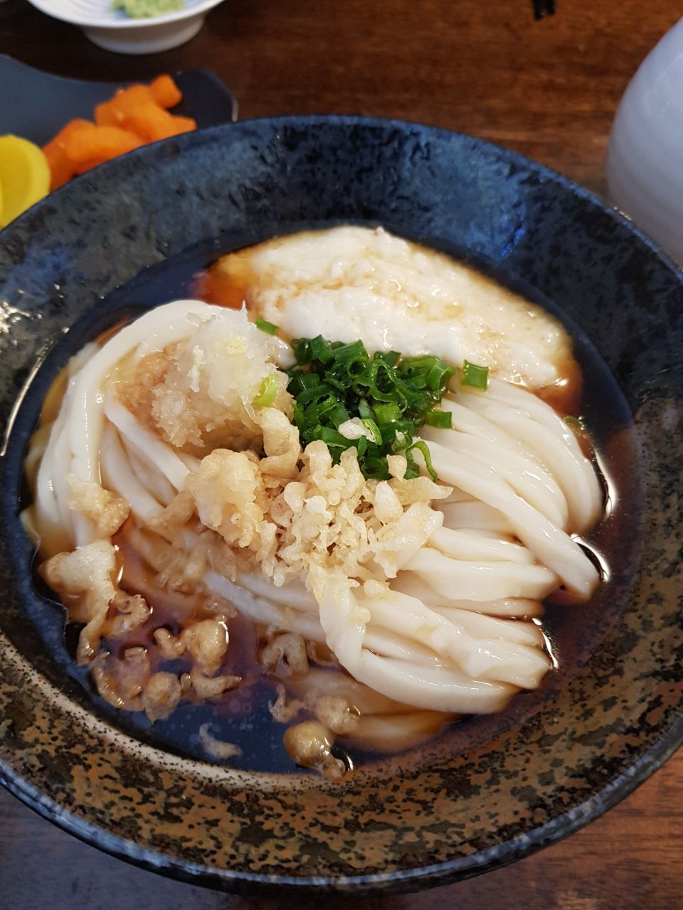 다시 대장님의 피자사업 얘기와 음식 얘기들로 1시간을 보낸 우리는 드디어 우동당에 입성. 우동당에는 이런저런 메뉴가 있지만 제일 종류가 다양한 음식은 '붓가케 우동' 일본식 비빔우동으로 일식 타래간장(양념 간장)에 우동면과 고명을 비벼서 차갑게 먹는 일식 냉우동이다. 하지만 이곳의 온우동도 무시하고 지나갈 메뉴는 아니기에 나는 온우동과 토로로붓가케(곱게 간 마를 얹어먹는 붓가케 우동) 우동을 주문했고, 처음 방문하시는 대장님은 나를 따라서 똑같이 시키셨다. 이때 나는 살짝 걱정되는 마음에,