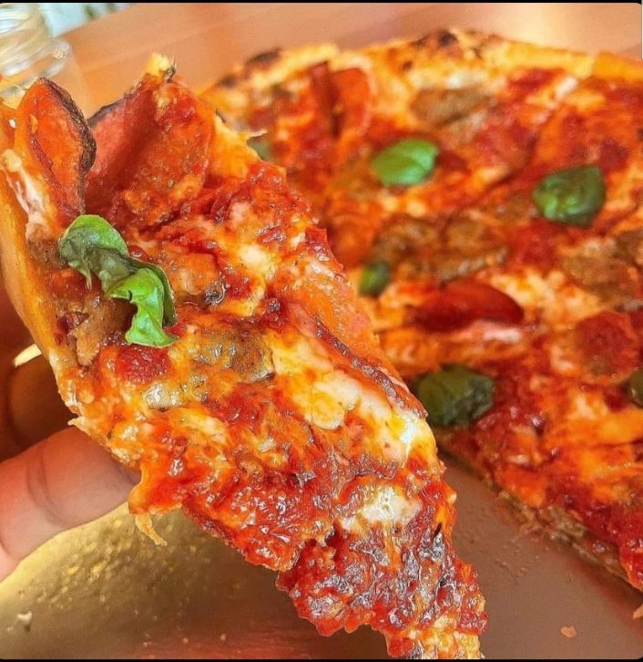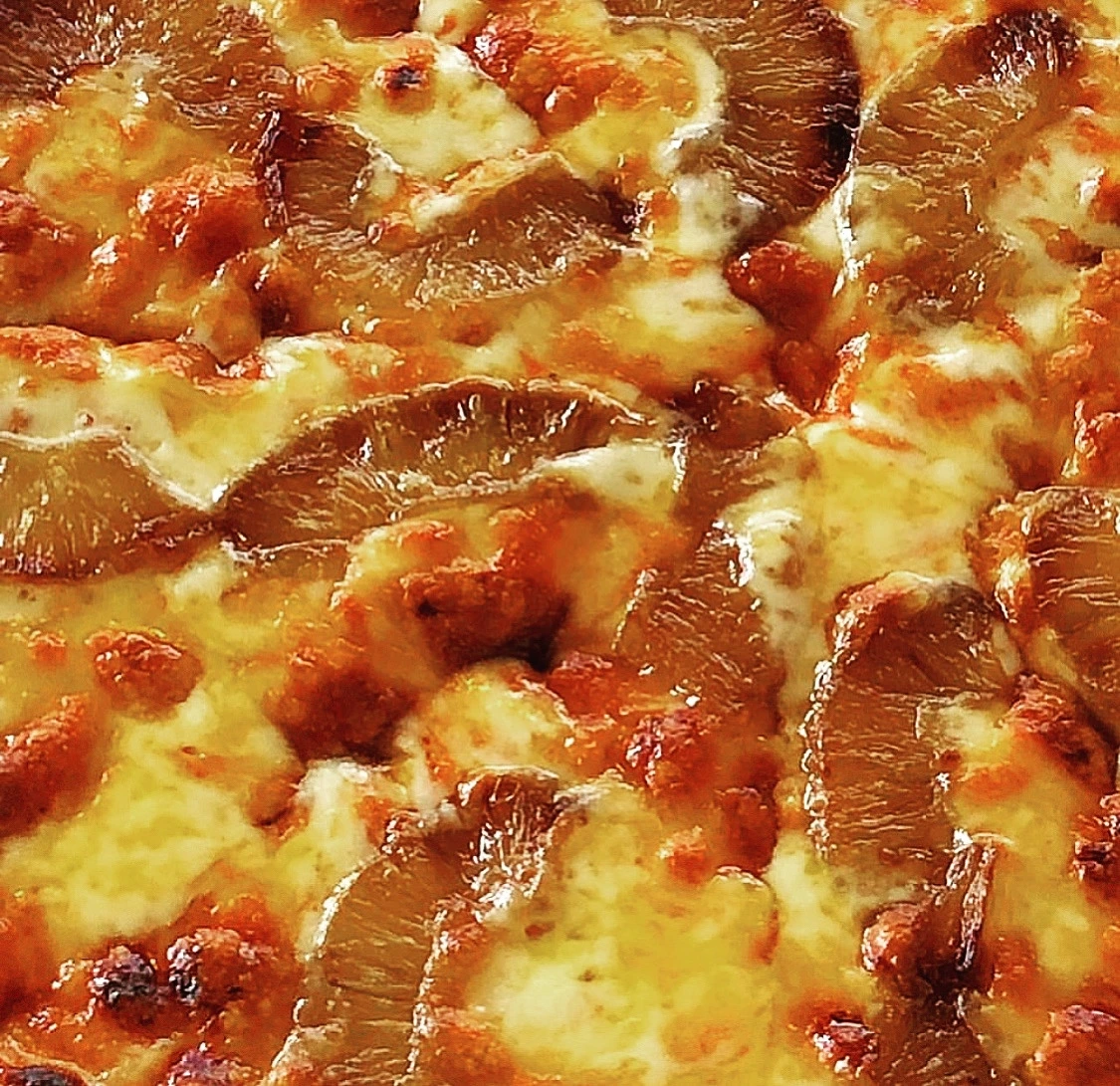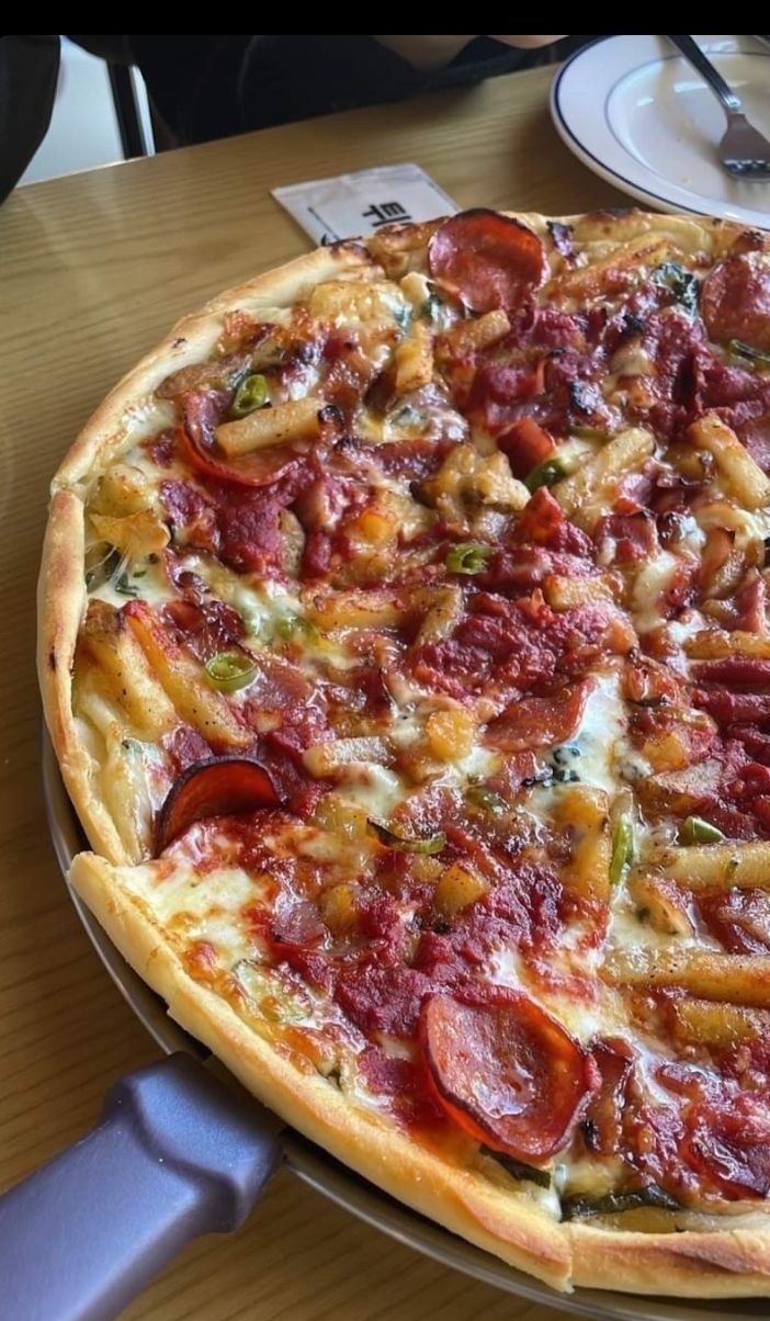 새콤하고 진한 토마토, 기름지고 즙이 가득한 돼지고기와 페퍼로니, 그리고 그 사이에서 맛의 균형을 잡아주는 치즈가 어울려 무겁고 진하지만 침샘을 자극하고 배가 든든한, 이 고기고기스러운 피자가 식욕을 더욱 당길 겁니다. 맛과 향이 강하기 때문에 짭짤해진 목을 축일만한 시원한 음료가 마시고 싶으실 겁니다, 분명.