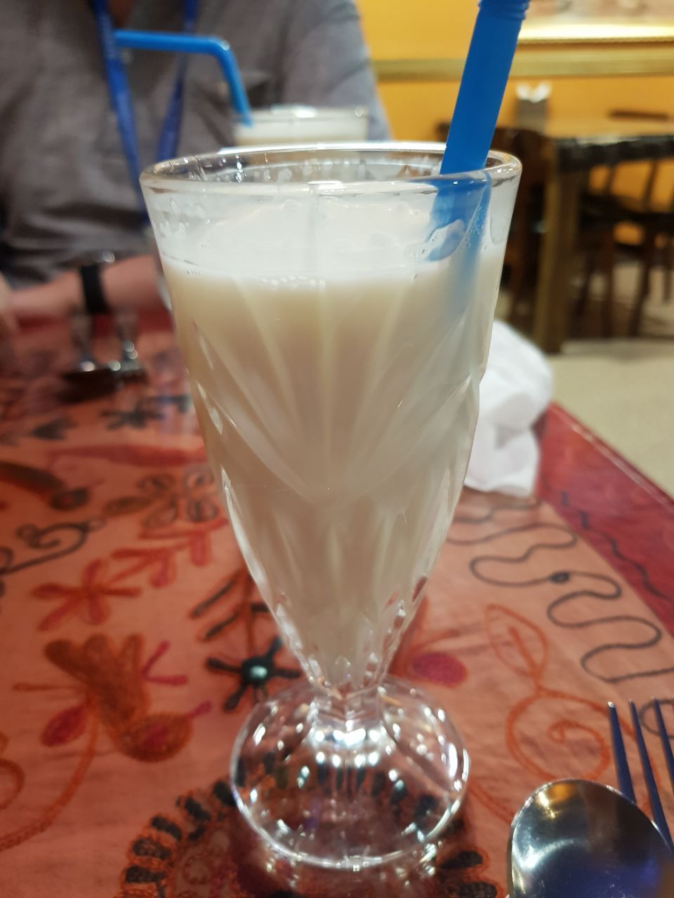 우리가 주문한 마살라는 치즈와 시금치가 들어간 팔락파니르, 닭고기와 토마토가 들어간 치킨 마카니, 그리고 양고기 마살라인 머턴 마살라였다. 음식이 나오기까지는 짧지 않은 시간이 걸렸는데 그 와중에 라씨가 제일 먼저 나왔다. 상큼한 요구르트의 향이 나고 진득해 보이는 음료였다. 내가 호주의 인도 음식점에서 먹었던 라씨는 단맛이 가미되지 않은 플레인 라씨라서 엄청 시고 짠맛이었는데, 이것은 어떨지 궁금했다.
