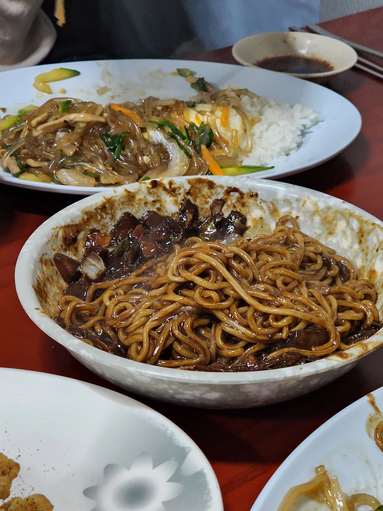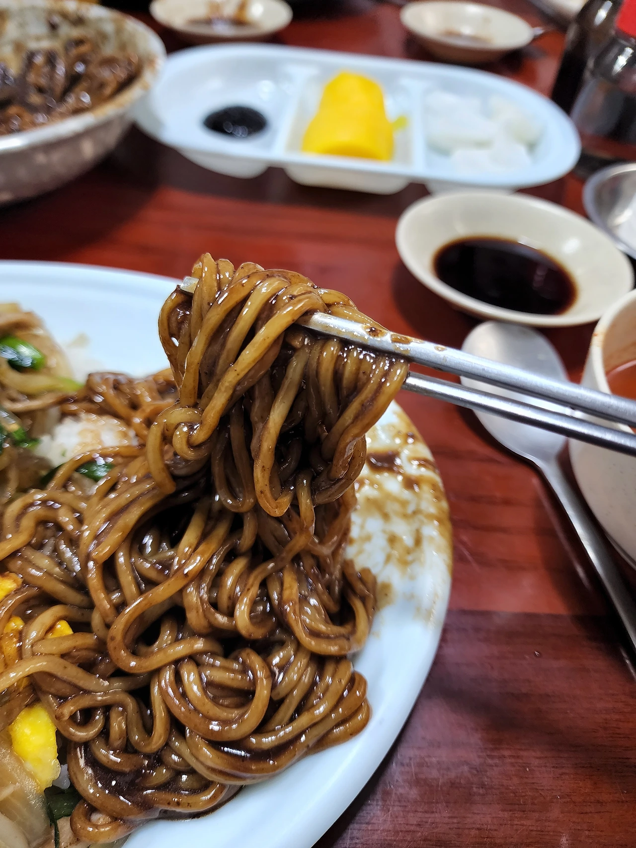 나 만큼이나 미식을 좋아하시는 K이사님께서 텐푸라에 간장을 살짝 찍어 말씀하신다. '고기튀김'이라는 말에 그리 큰 기대를 하지 않았던 나머지 사람들도 이제는 음식이 맛있어 크게 떠진 눈으로 '후 하 후 하' 뜨거운 고기를 불어먹으며 식사가 오기를 기다렸다. 내가 맛을 한번 보고 싶었던 음식은 짜장면이었다. 잡채밥이 익숙지 않았던 어느 분께서 주문을 했었던 것인데, 달착지근하고 묵직한 맛이 다른 중국집에 비교해서 아쉬운 점이 없는 맛이었다. 하지만, 잡채밥과 짬뽕이 워낙 맛이 좋기에 짜장면이나 다른 메뉴들의 맛이 드러날 수 없는 곳이 원성식당이었던 것이다.