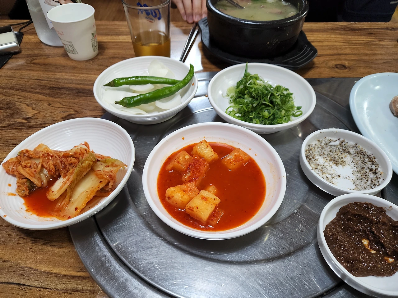 아삭하고 말캉하게 씹히는 깍두기의 채수맛이 입안에 퍼진다, 달콤하고 약간의 매콤함이 감칠맛까지 느껴지고, 시원하다. 오래간만에 굉장히 맛있는 깍두기다, 칼국수 집에서 기본을 나오는 깍두기들 보다 약간 더 달달한 맛을 지녔지만 이 깍두기 국물을 후에 국밥을 반 정도 먹었을 때 넣어서 먹으면 무슨 맛이 날지 큰 기대가 생겼다. 아삭아삭하고 깍두기를 씹을 때마다 깍두기무와 그 물의 시원함과 달달함이 입안에 퍼져서 나는 자연스럽게 고개를 연거푸 끄덕였다. 국밥집을 가장한 깍두기 맛집이로구나, 나는 속으로 외쳤다.