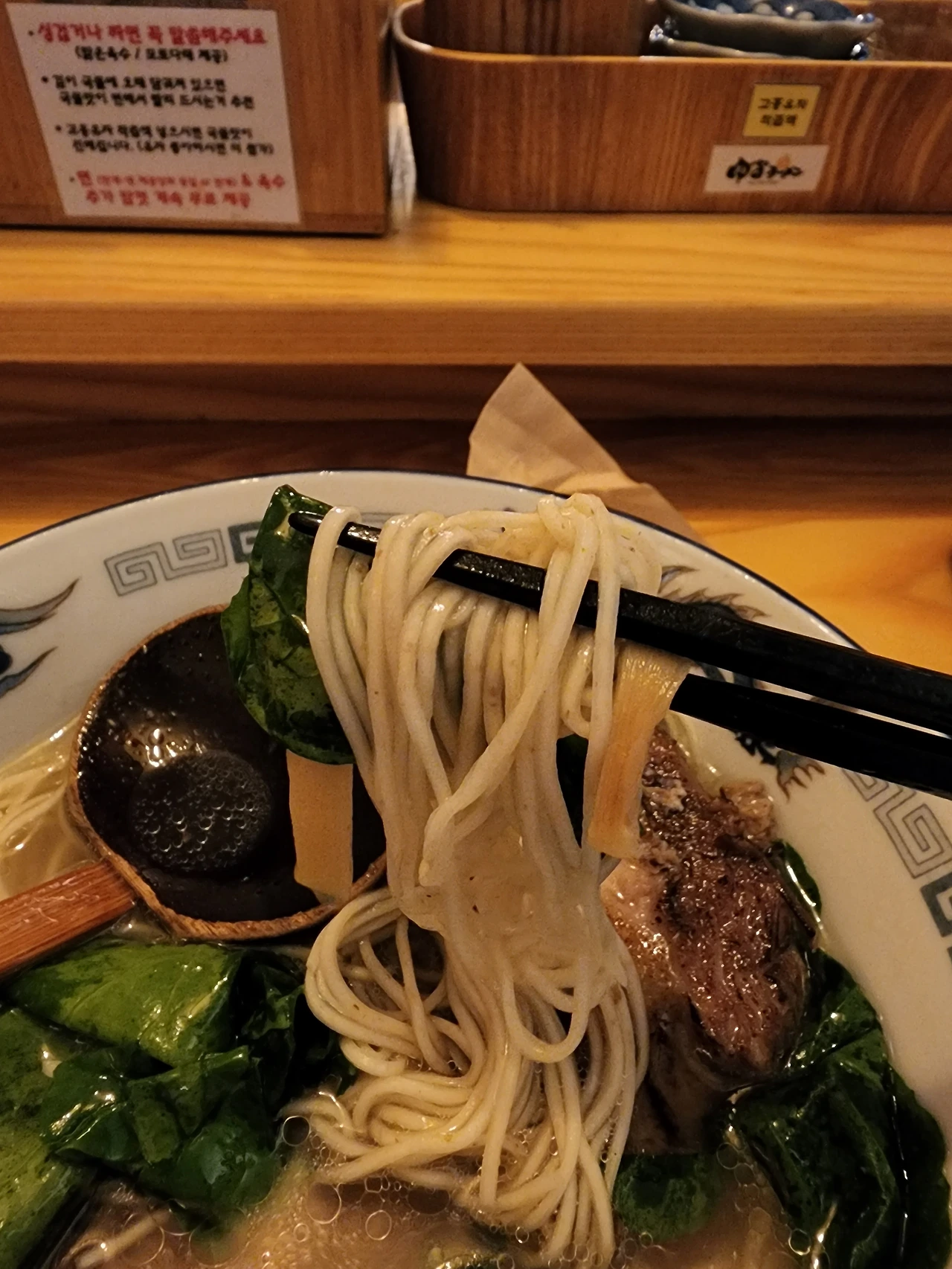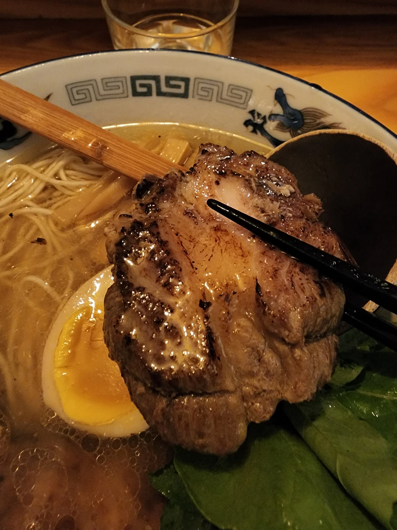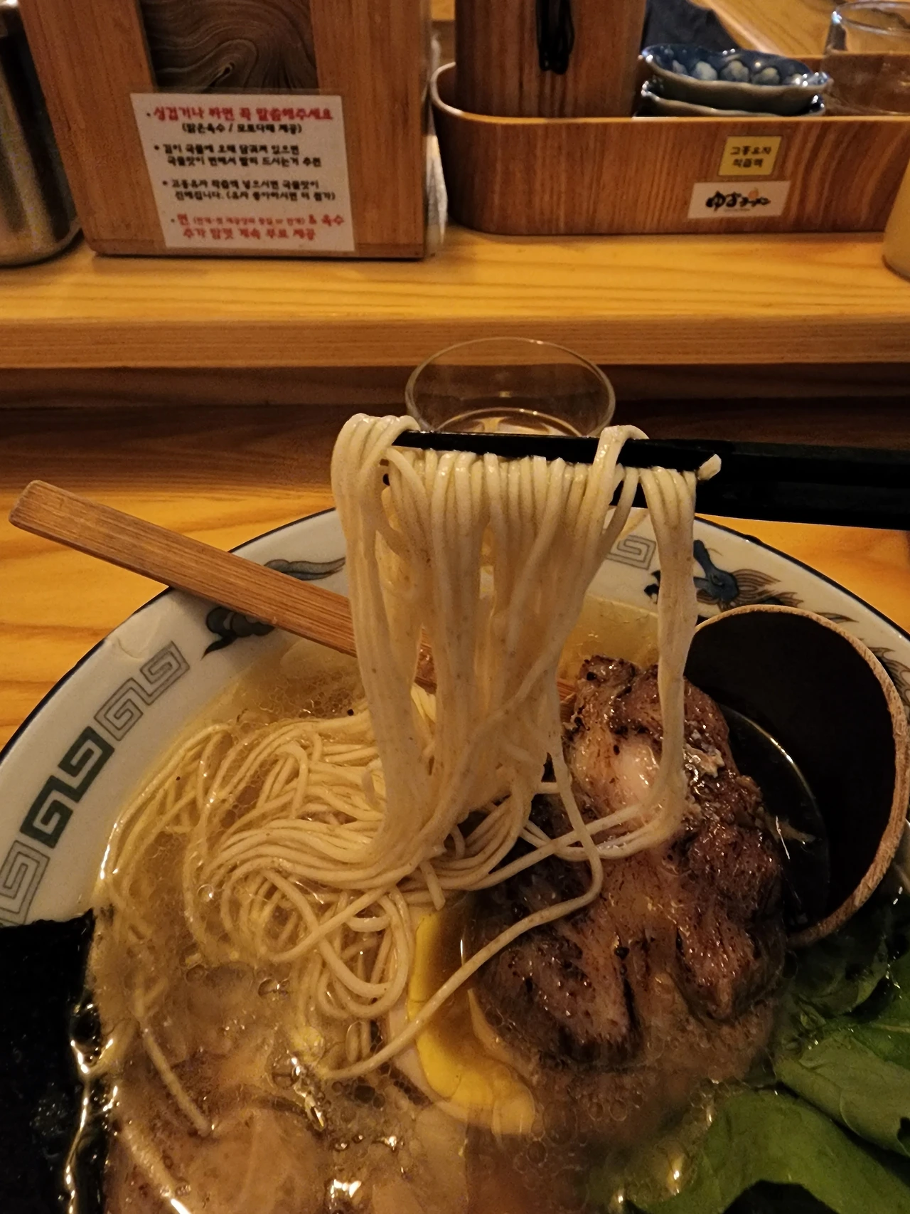한번 젓가락을 집어서 한입을 물어뜯으니 차마 멈출 수가 없다, 넓고 두꺼운 그 이베리코 차슈 한 조각을 다 먹어치우고서야 나는 다시 육수 국자와 면발을 집어 들었다.