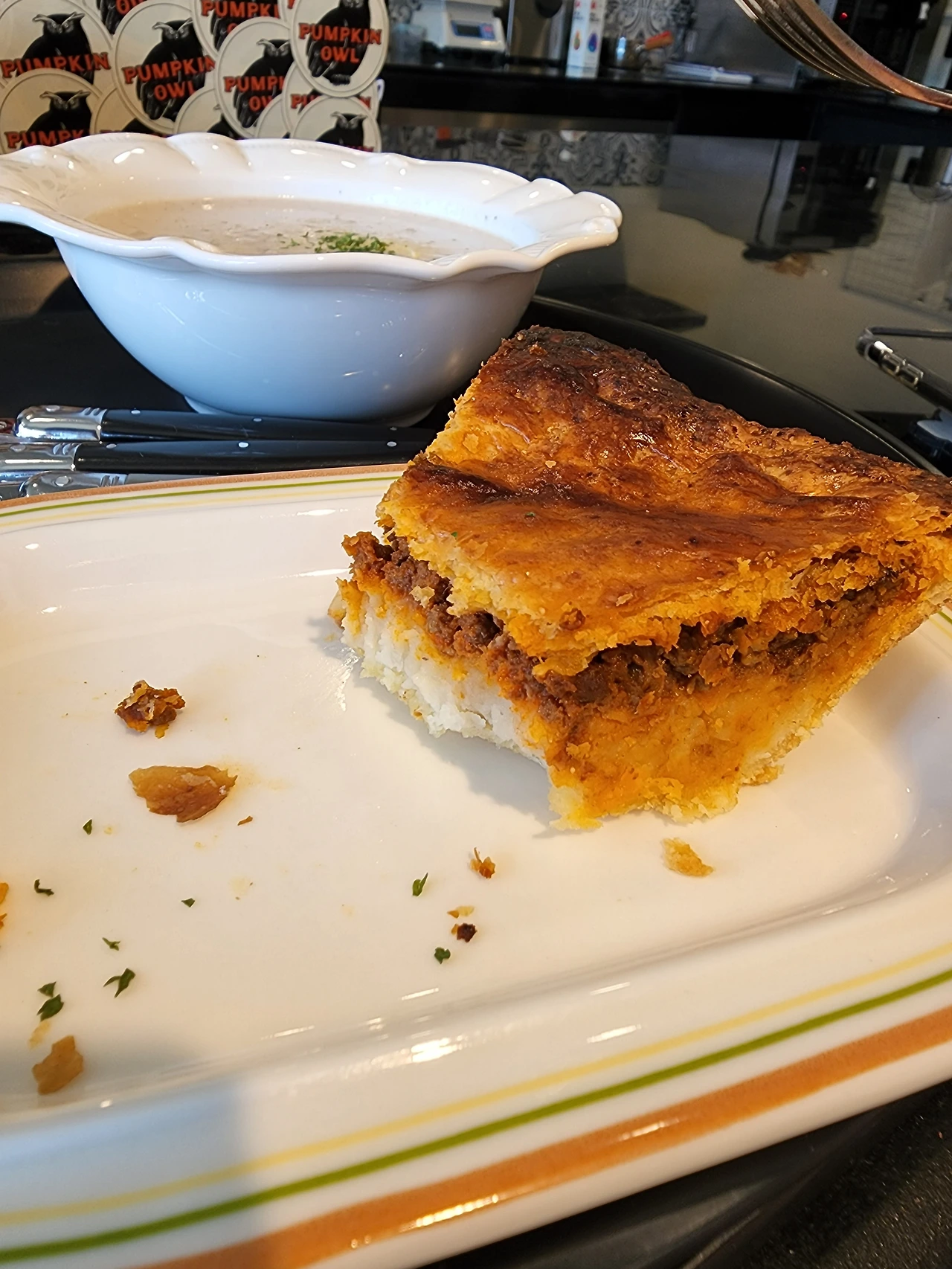 향긋한 라구소스와 고기에 이어 부드럽고 심심한 으깬 감자의 맛이 균형을 이룬다. 맛의 균형이 한쪽으로 치우쳐질 수 있는 것을 방지하는 필수불가결의 탄수화물. 그래서 그런지 감자와 고기를 함께 익혀서 먹는 영국의 셰퍼드파이가 많이 생각나는 파이다. 거기에 적절히 바삭하고 단단한 파이 옷이 재료들이 흐트러지지 않게 모양을 잡아주니 파이의 중심으로 갈수록 부드러워서 쉽게 부서지던 모양 때문에 손으로 잡고 먹을 수 없었던 파이를 중간부터는 한 손으로 잡고 피자 먹듯이 먹었다.