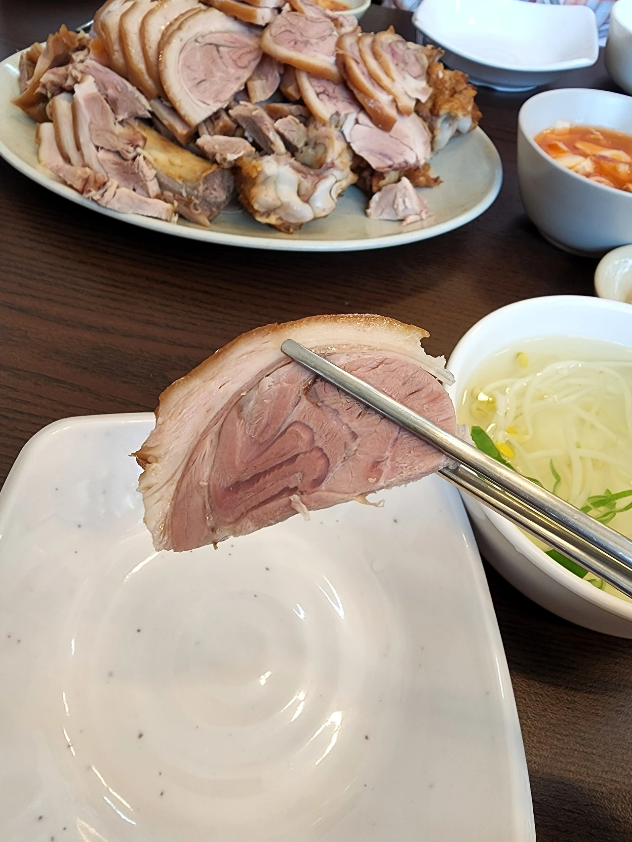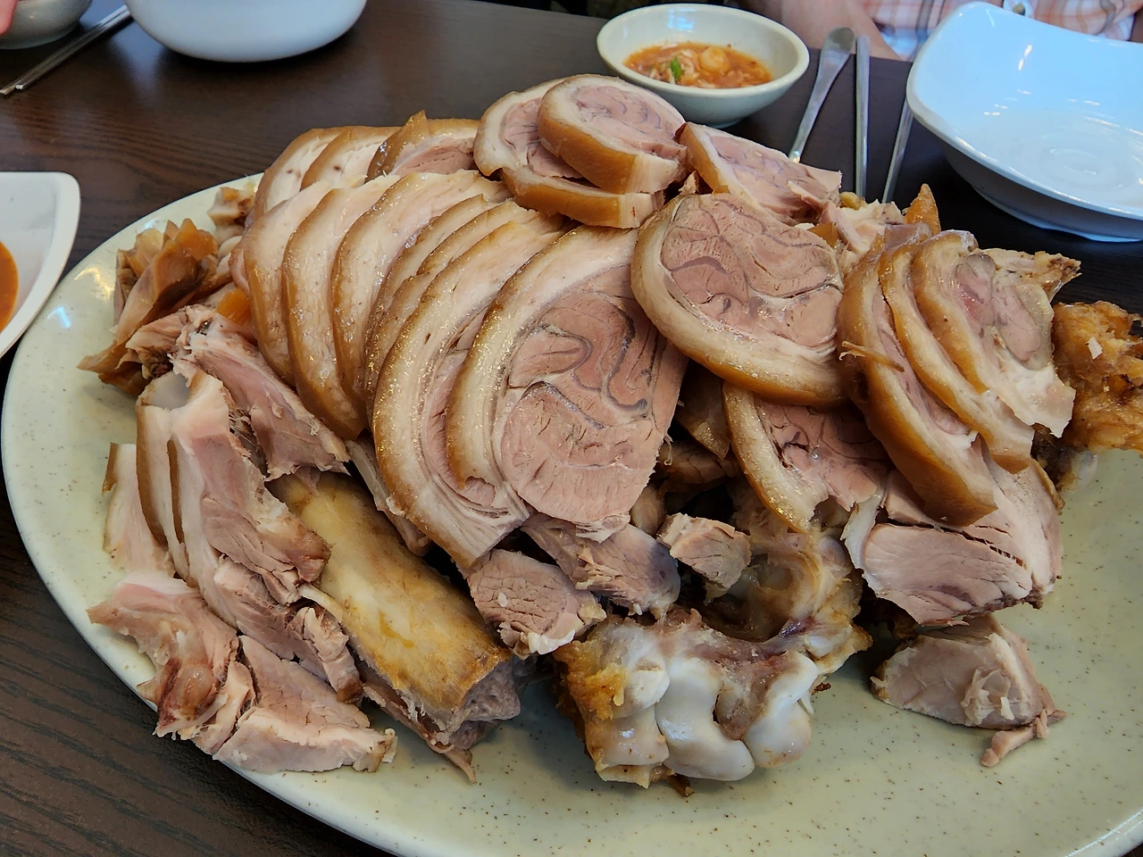 지금까지 나에게 족발이라는 것은 서울 장충동이나 시청에서 보았던 뜨끈뜨끈한 한방족발 혹은 오향족발, 아니면 부산에서 주로 볼 수 있는 냉채족발. 족발은 완전히 뜨겁거나 혹은 차갑거나 둘 중 하나인데 뜨거운 족발을 식혀서 미지근하고 살짝 서늘하게만 해서 나오는 족발이라니. 호기심이 생겼다, 궁금증이 생겼다.