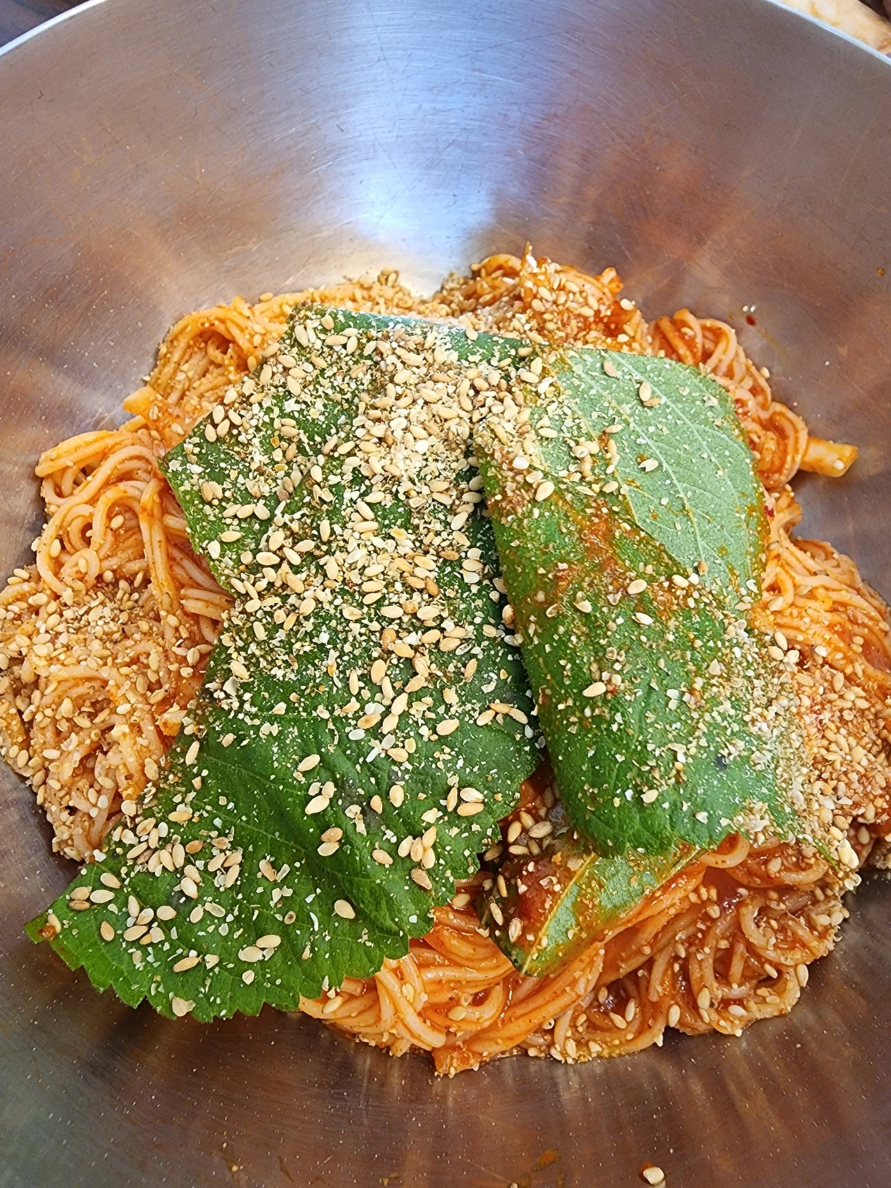 신김치에서 나는 것으로 느껴지는 아주 약간의 새콤함과 매콤함에 고소함과 짭짤함이 뒤따라오는데, 다시 고춧가루의 매콤함과 김치의 맛이 끝 맛으로 딱, 다시 족발처럼, 깔끔하게 끝이 나는 맛이다. 질펀한 새콤달콤하고, 감칠맛이 흘러내리는 비빔국수를 기대했는데 이렇게 새콤매콤하게 딱 떨어져서 깔끔하게 넘어가는 맛이라니. 비빔국수도 클린컵이네. 다시 한번 면을 말아서 먹어본다.