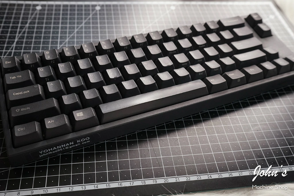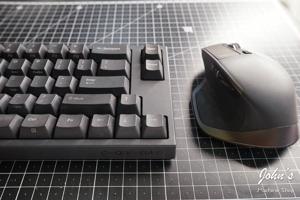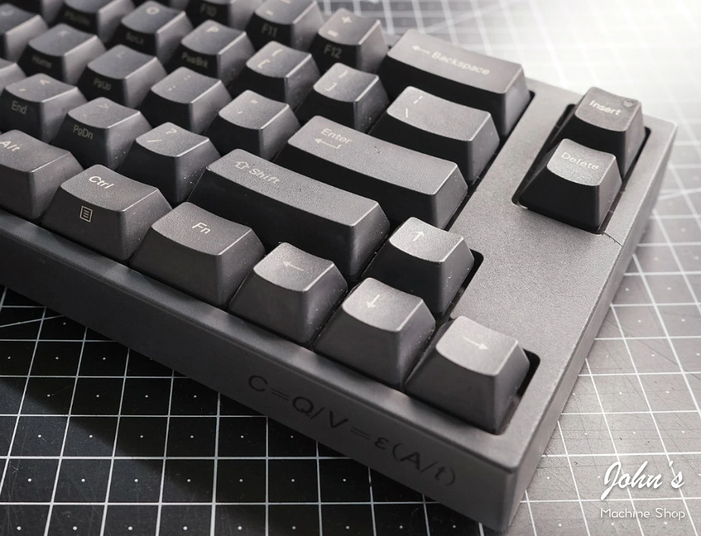 이 와중에 나름 일본 토프레의 리얼포스에 적용된 정전용량 방식이 자랑스럽고 홍보하고 싶었는지 키보드 우측 하단 전면부에 공식을 써놓았다. 다크그레이 본체에 블랙 텍스트라 그리 티는 안 난다.