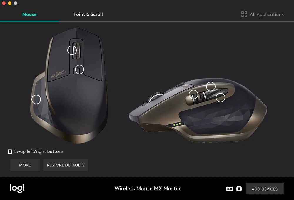 Logitech의 Unifying 수신기와 Bluetooth 연결을 모두 지원하며 기기 연결을 총 3개까지 할 수 있어서, 맥북과 윈도우 노트북을 번갈아가며 둘 다 사용하기에 굉장히 편리하다. 새로 나온 모델은 마우스 내장 메모리에 클립보드 복사 기능을 지원한다는데 매우 궁금하긴 하지만 돈을 주고 사볼 정도는 아니다.