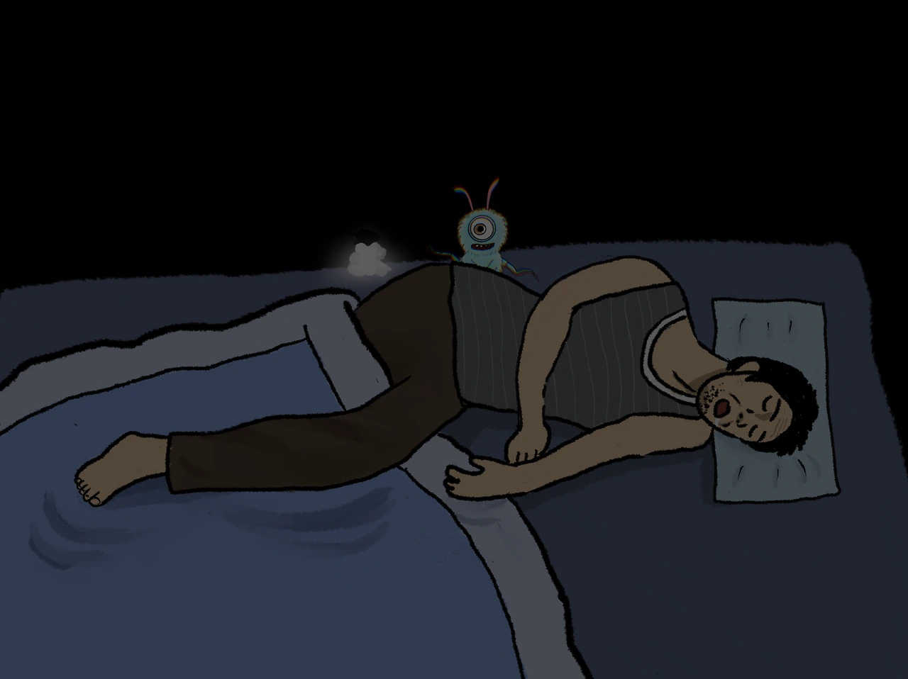 수빈이 아빠는 새벽이 될 때까지 방귀를 뀌어 댔다. 그때마다 앤트리오는 주먹만 한 눈이 떠졌고 밤톨만 한 눈동자는 눈 안에서 몇 바퀴 굴러댔다. 앤트리오에겐 정말 힘든 밤이었다. 좋아하는 걸 못 참는 앤트리오의 눈이 빨갛게 충혈 됐다.