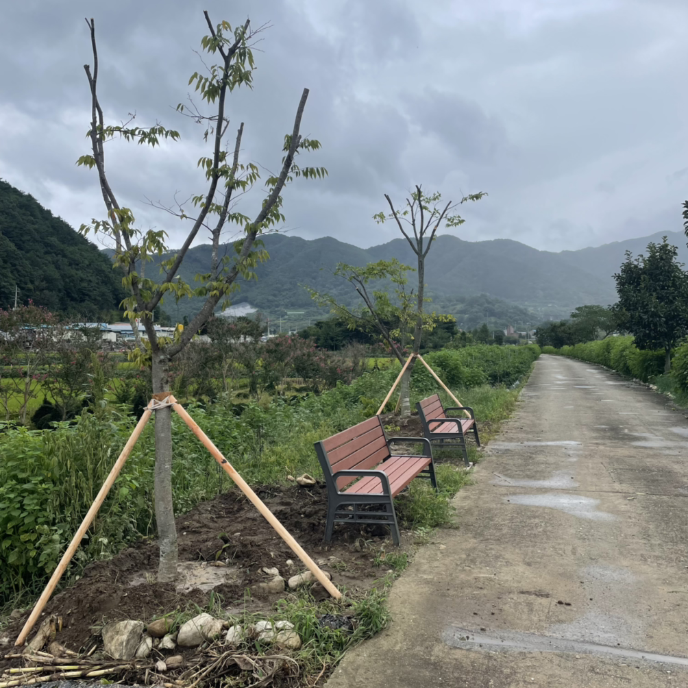 성난 걸음으로 걷다가 긴 의자 옆에 느티나무까지 심어둔 걸 보고 기분이 좋아졌다. 내 마당에 누군가 선물을 준 것만 같아. 그나저나 비가 더 많이 온다. 다시 성난 걸음으로 집에 가자.