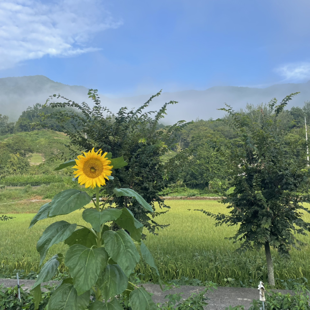 해바라기를 중앙에 세우지 않았다. 주인공이 맞지만, 해바라기 표정이 쑥스러워서 살짝 비껴 찍어줬다. 고추밭 중앙에 피어있는 해바라기, 해바라기여서 살아남은 것이다.