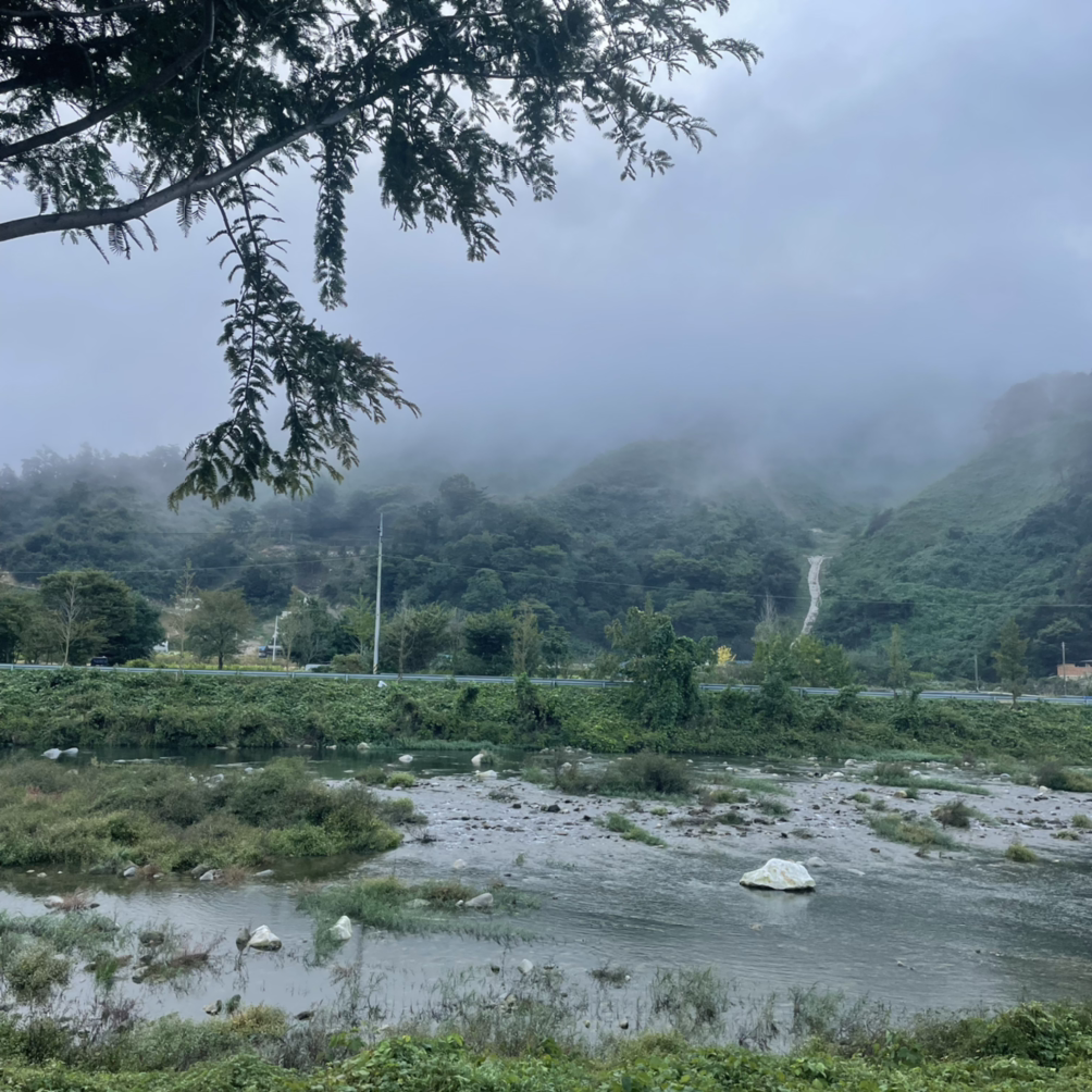 안개가 바람에 날렸다. 내 눈앞에도 안개 알갱이가 있겠지만 건너편 산만큼 떨어져야 보인다. 난 아마도 안갯속에 있었을 것이다. 축축함이 느껴졌고 세수한 것처럼 눈이 뜨였으니까.