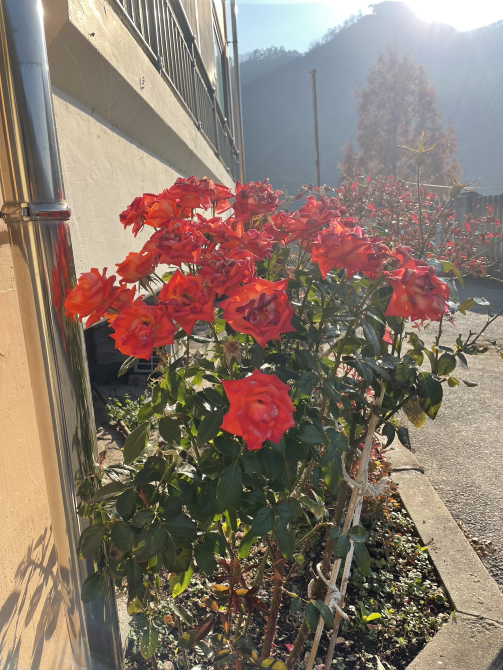 서리 맞은 양파 잎은 어느새 촉촉해졌다. 그리고 우리 집 올라가기 전 장미꽃은 아직도 살아있다.