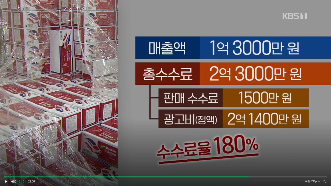 심지어 한 시간 방송에 매출액은 1억 3천만 원인데 수수료는 2억 3천여만 원을 낸 적도 있습니다.