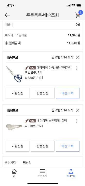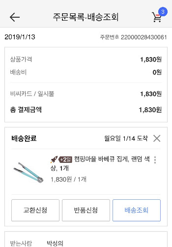 지난 1월 13일에 급 집게와 가위가 필요해서 주문을 해봤습니다. 얼마까지 주문되나 궁금해서 주문을 2개로 쪼개서 해봤지요. 네 1,830원짜리 하나도 그냥 무료로 배송해 줍니다. 외쳐 갓팡~~ 아래와 같이 2개의 주문을 완성! 이미지를 좌우로 넣고 싶었는데 이제 잘 안되네요(알려주실 분 굽신굽신)