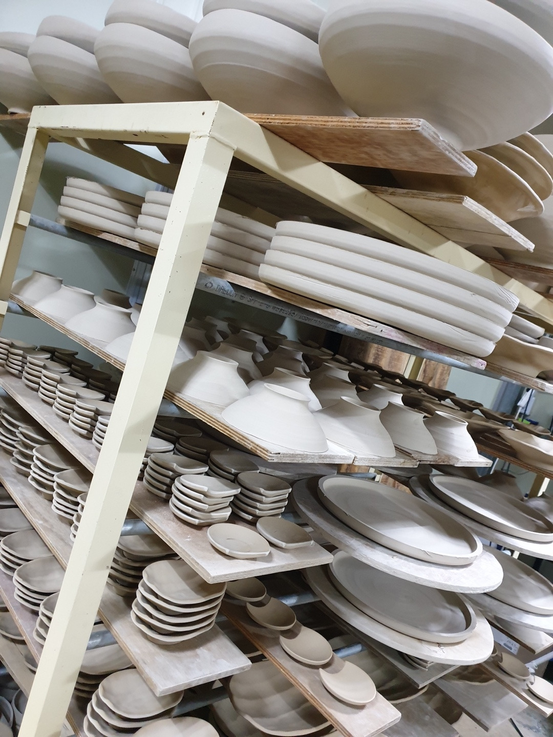 - 시간이 흐르고 실력이 좀 쌓였다고 생각하지만, 도자기가 형태적으로 작업을 했을 때 수축과 변형을 하면서 작업 과정이 원할하지 않고, 마지막으로 가마에 들어갔을 때 1,250도라는 고온에서 생각했던 것과 다른 결과물이 나오는 것이 여전히 어렵죠.
