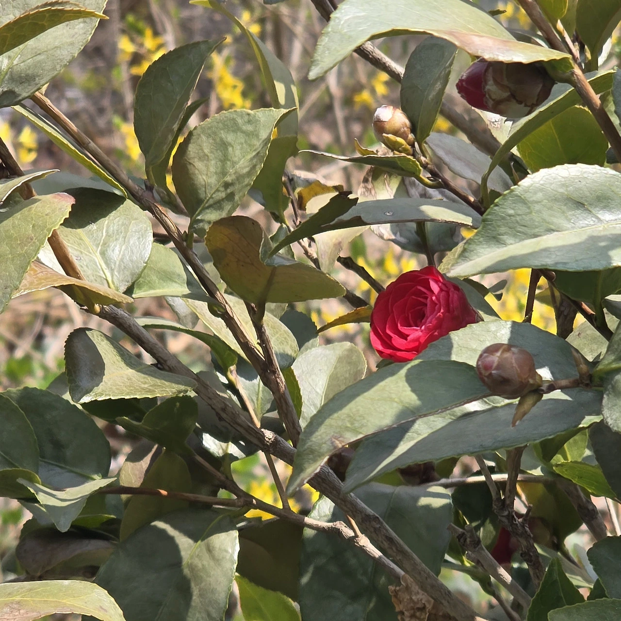 타워팰리스 쪽에 있는 동백은 아직도 활짝 피지는 않았다. 나무가 작아서 큰 나무들에 가려 빛을 많이 받지 못해 그런 모양이다.