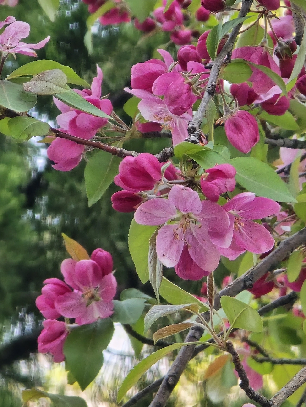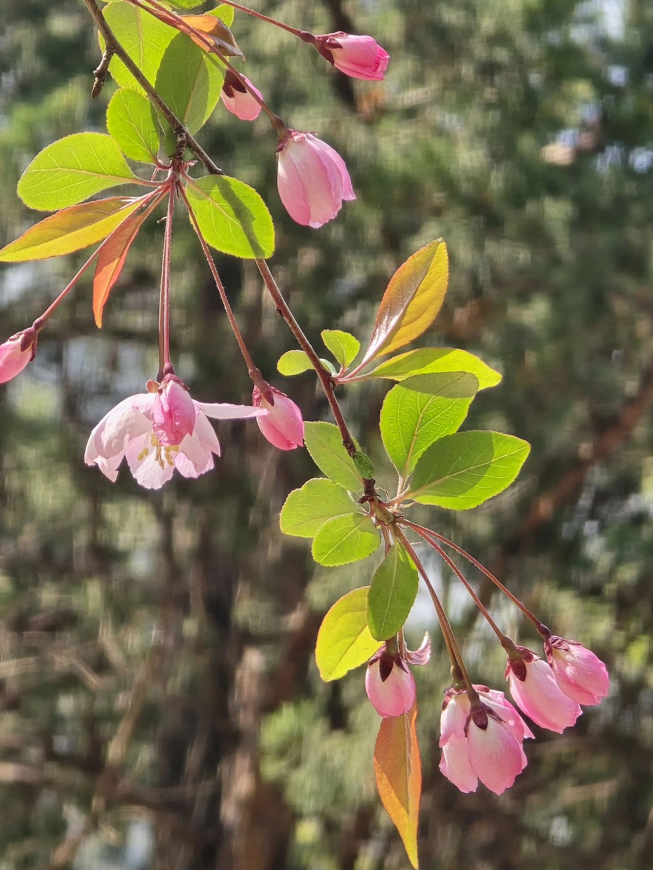 그런데 그 옆에 비슷하게 생긴 꽃이 핀 나무가 두 그루 서있다. 자세히 보니 좀 모양이 다르다. 분홍색과 꽃 크기는 비슷한데, 꽃자루가 벚꽃 모양 길쭉하다.