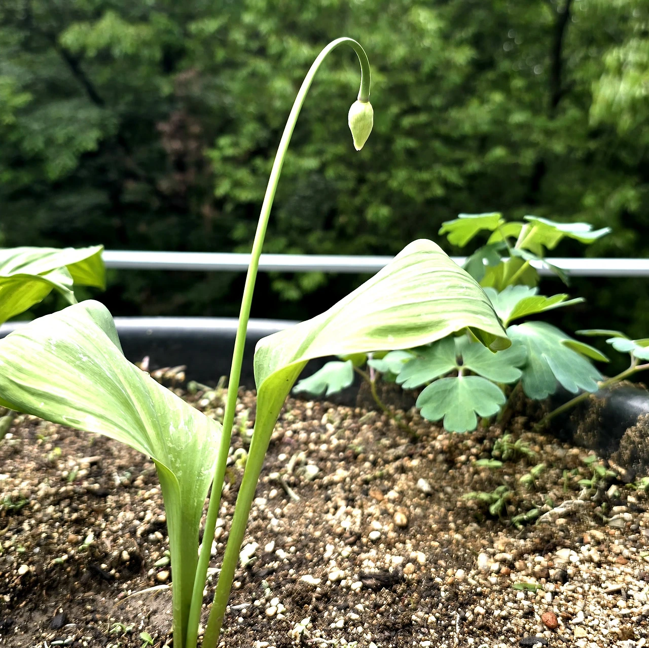 마당으로 돌아와 화단을 살펴보니 명이 꽃대가 올라왔다. 명이는 삼겹살집에서 장아찌로만 잎을 봐왔지 꽃을 본 일은 없다. 다음 주에는 필 것 같은데 다음 주에는 지인들과 여행을 떠나기 때문에 꽃 피는 것을 보지 못할 수도 있겠다.