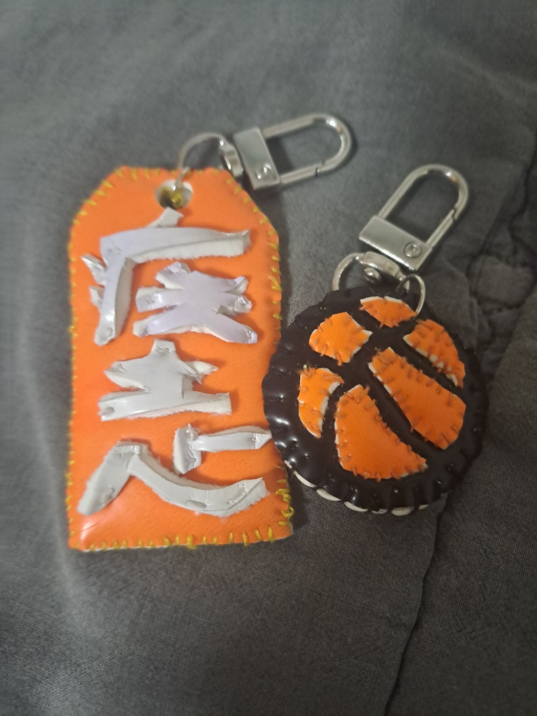 결과물. 농구공 키링과 한자 키링은 유니폼 제공해준 동아리에게 감사하는 의미로 만들어서 같이 찍었다.