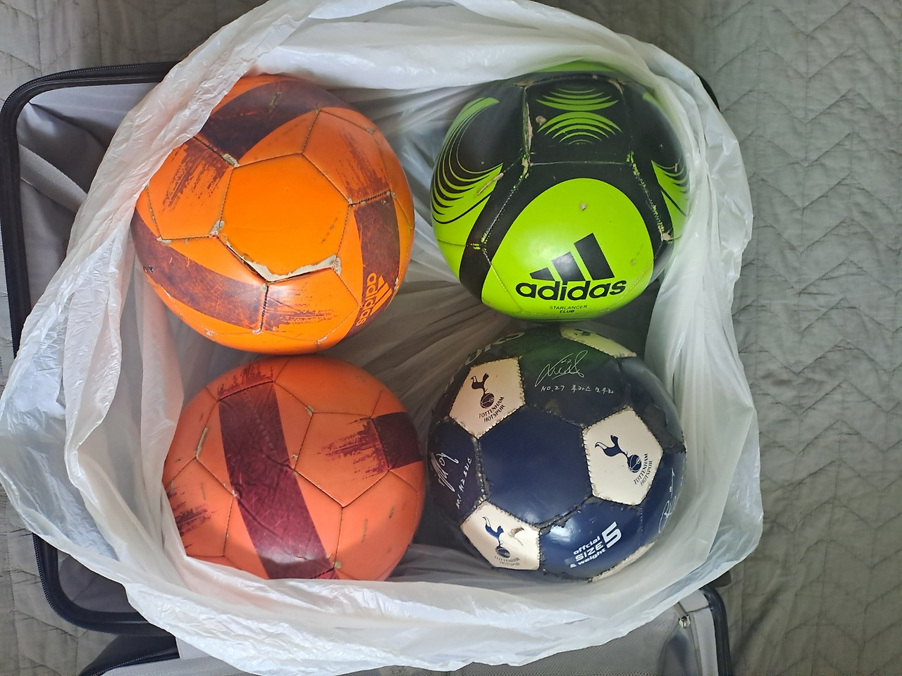 재료가 된 축구공. 알바하는 축구교실에서 받아왔다.