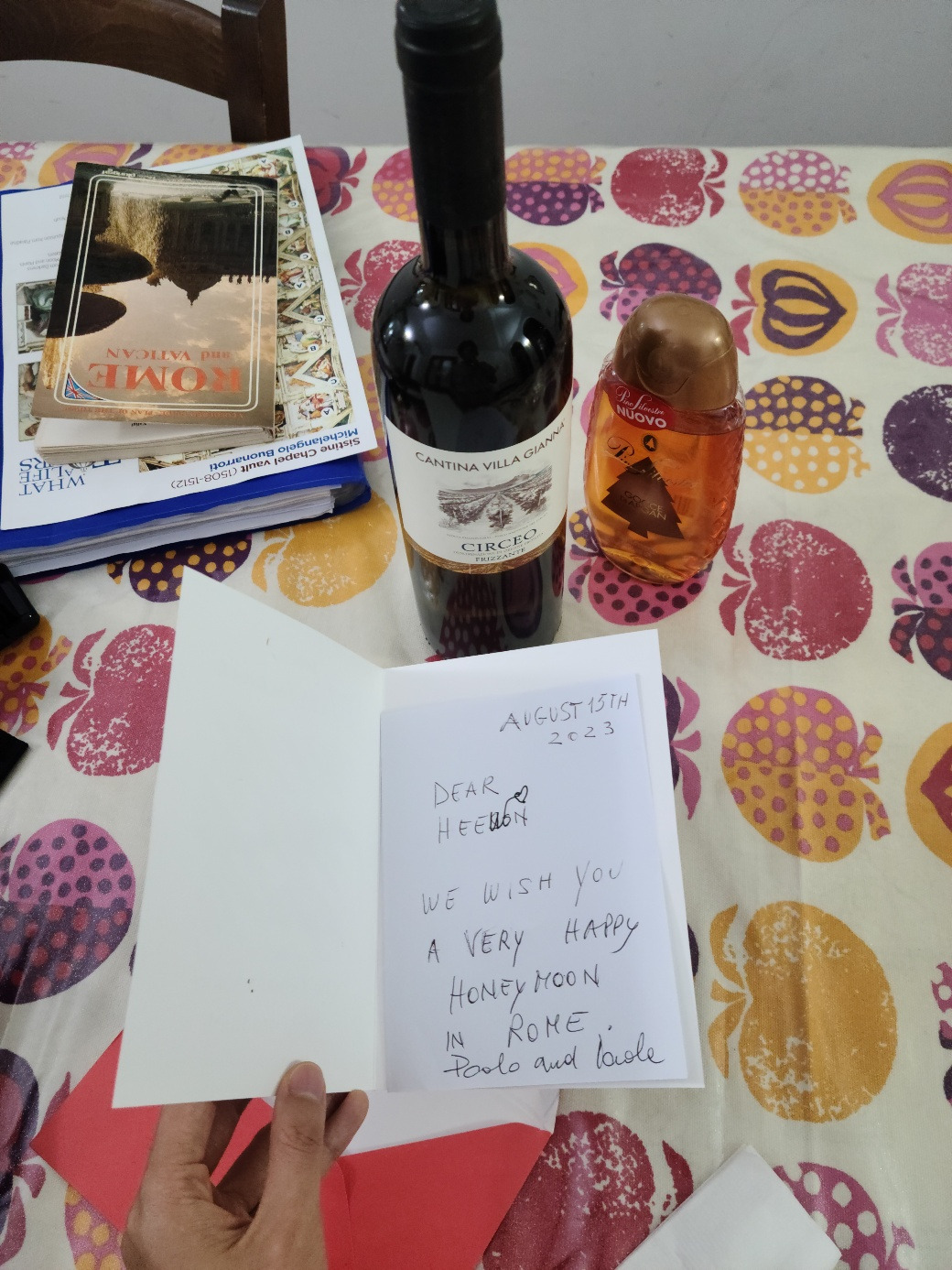 늦은 신혼여행이었지만 축하한다고 써주신 할아버지의 카드와 와인 선물.