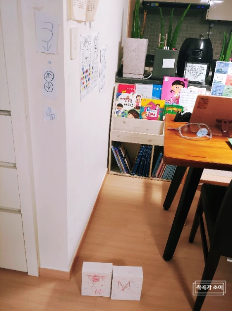 그런데, 자세히 보니 벽에 무얼 잔뜩 붙여 놓고 웬 박스도 갖다 놓았네요.