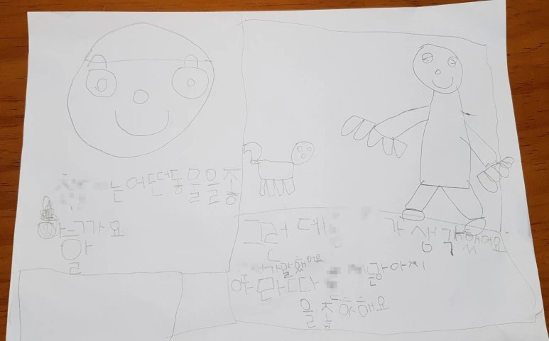받침을 빼먹기 일쑤이고 더듬더듬 쓰는 수준이지만, 본인이 쓰고 싶은 글들을 소리 내어 쓰는 걸 보면 너무나