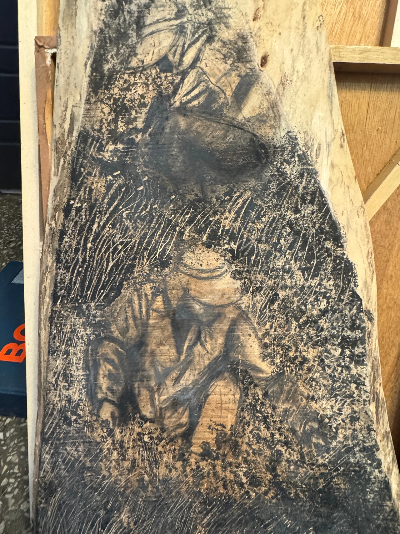 나무결의 상처와 균열은 노동자의 굽은 자세와 포개지고,