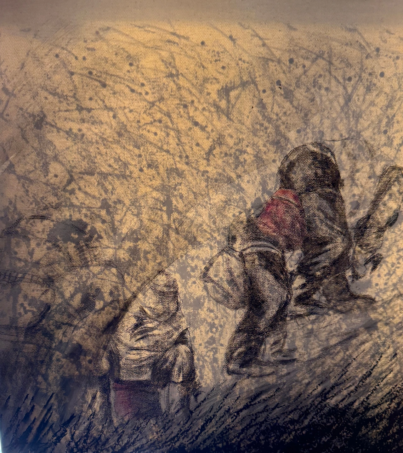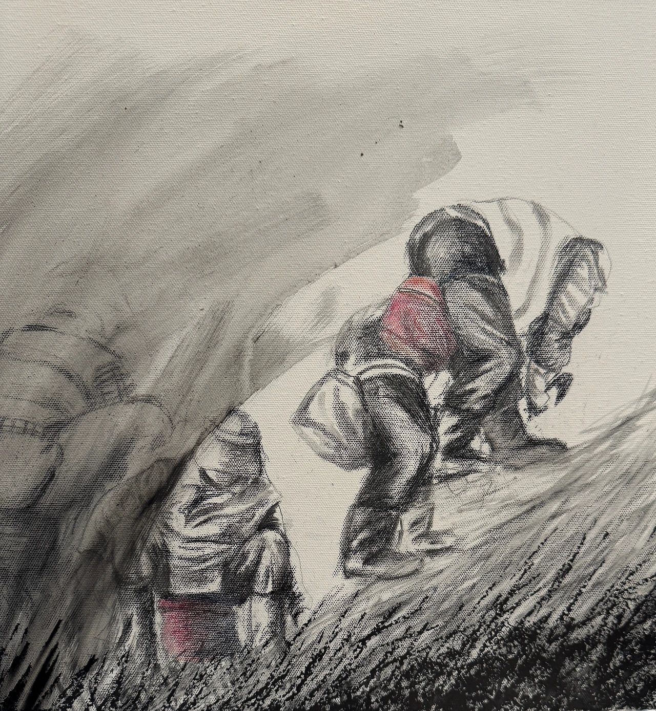 앞면에는 목탄과 수성흑연으로 노동자의 형상을 그렸고,