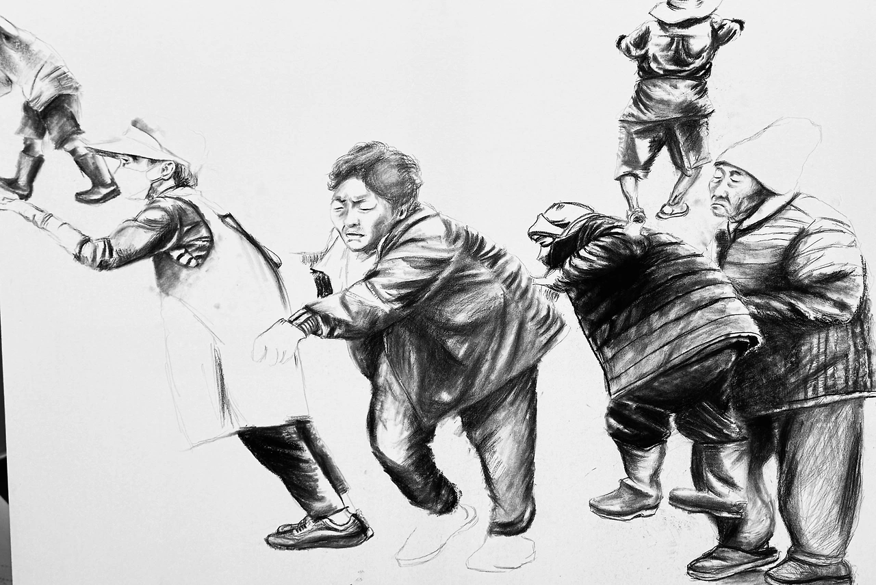 관객은 거친 선과 무늬 너머에서 사라지지 않은 인간의 동작을 더듬듯 마주하게 된다. 이 작품은 노동을 재현하기보다, 반복된 노동이 남긴 삶의 표면—삶의 무늬—를 세심하게 들여다보는 데 그 사용가치를 둔다.