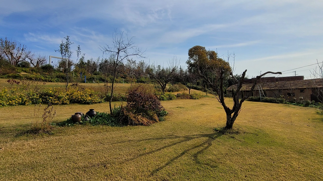 살아있는 나무뿐만이 아니라 겨울이면 가릴 것 없는 돌탑이나 항아리와 같은 조형물들도 사실 잔디와 함께 어우러지면 자태가 폼나서 굳이 눈이 없는 겨울이라 하더라도 꽤 멋스럽다. 심지어 붉은 단풍으로 치장한 남천이나 홍가시까지도 잔디 덕을 보게 되면 그것들의 미모뿐만 아니라 정원의 전체적인 분위기까지 확 달라진다.