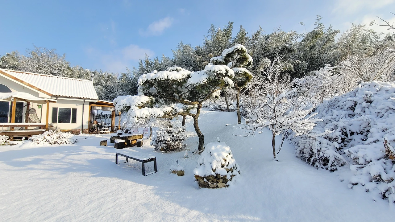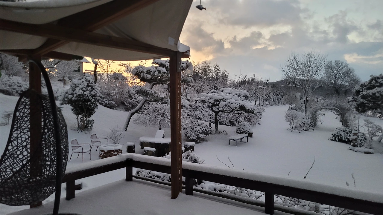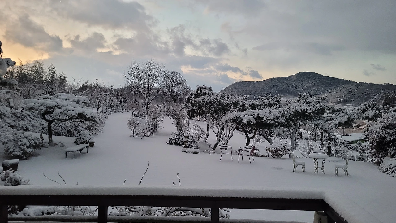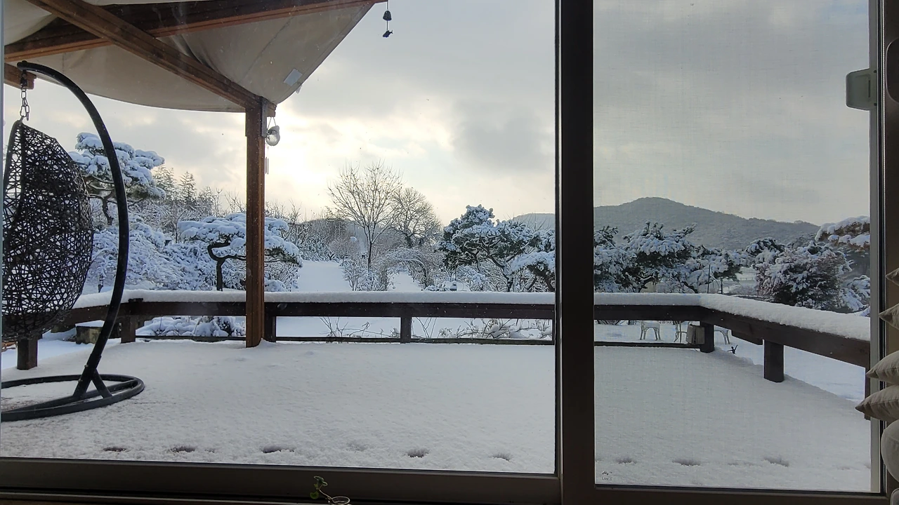 예보한 대로 밤새 눈이 엄청 내렸다. 데크마루에 쌓인 눈높이를 가늠해 보니 10cm는 족히 넘어 보였다.