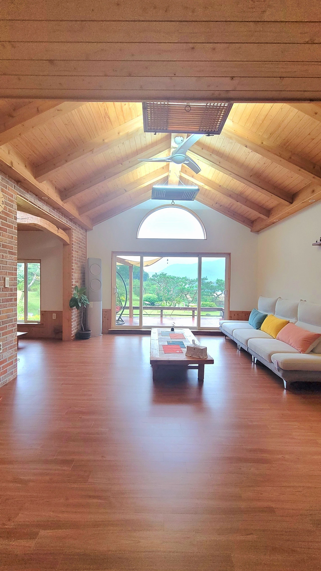 TV도 없고, 거실에는 커튼도 달지 않았으며 세간살이는 간소하다. 또 넓고 넓은 마당에는 하늘을 가리는 활엽수보다는 적당한 키에 사계가 푸른 측백류에게 자리를 내주고, 꽃과 잔디로 키를 낮췄으며, 정원의 포인트인 오브제조차도 꽉 차지 않게 여유를 두는 편이다.