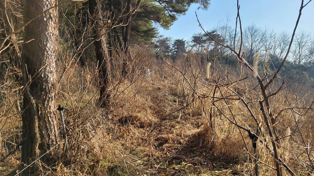 마른 잡목과 잡초들이 뒤엉킨 사이로