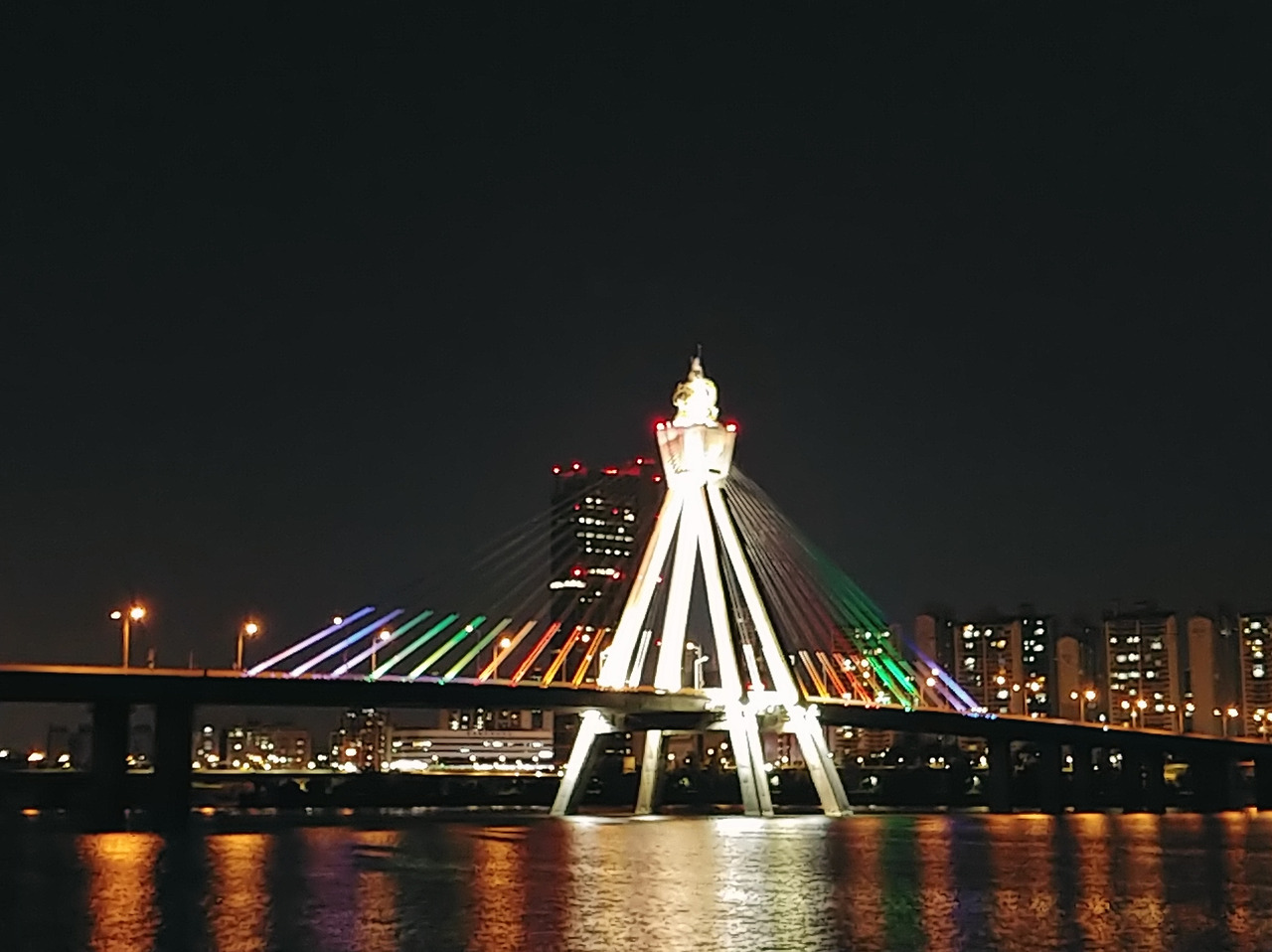 나는 내게 익숙한 낮의 다리, 분수, 건축물들이 밤에 무지개 조명으로 비추고 있으면 현자 타임이 온다. 서울을 조금만 돌아다녀보면 이런 조명들이 은근히 정말 많다. 그때마다 속으로 소리친다.