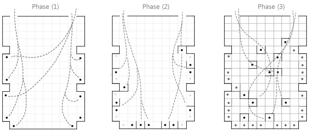 (2) 먼저 점유된 영역의 칸막이를 활용해 개인 영역을 확보해간다.