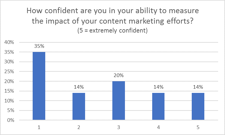 하인즈 마케팅(Heinz Marketing)의 조사에 따르면 마케팅 담당자의 28%만이 컨텐츠 활동의 영향을 측정할 수 있는 자신감이 있다는 지표를 전했다.