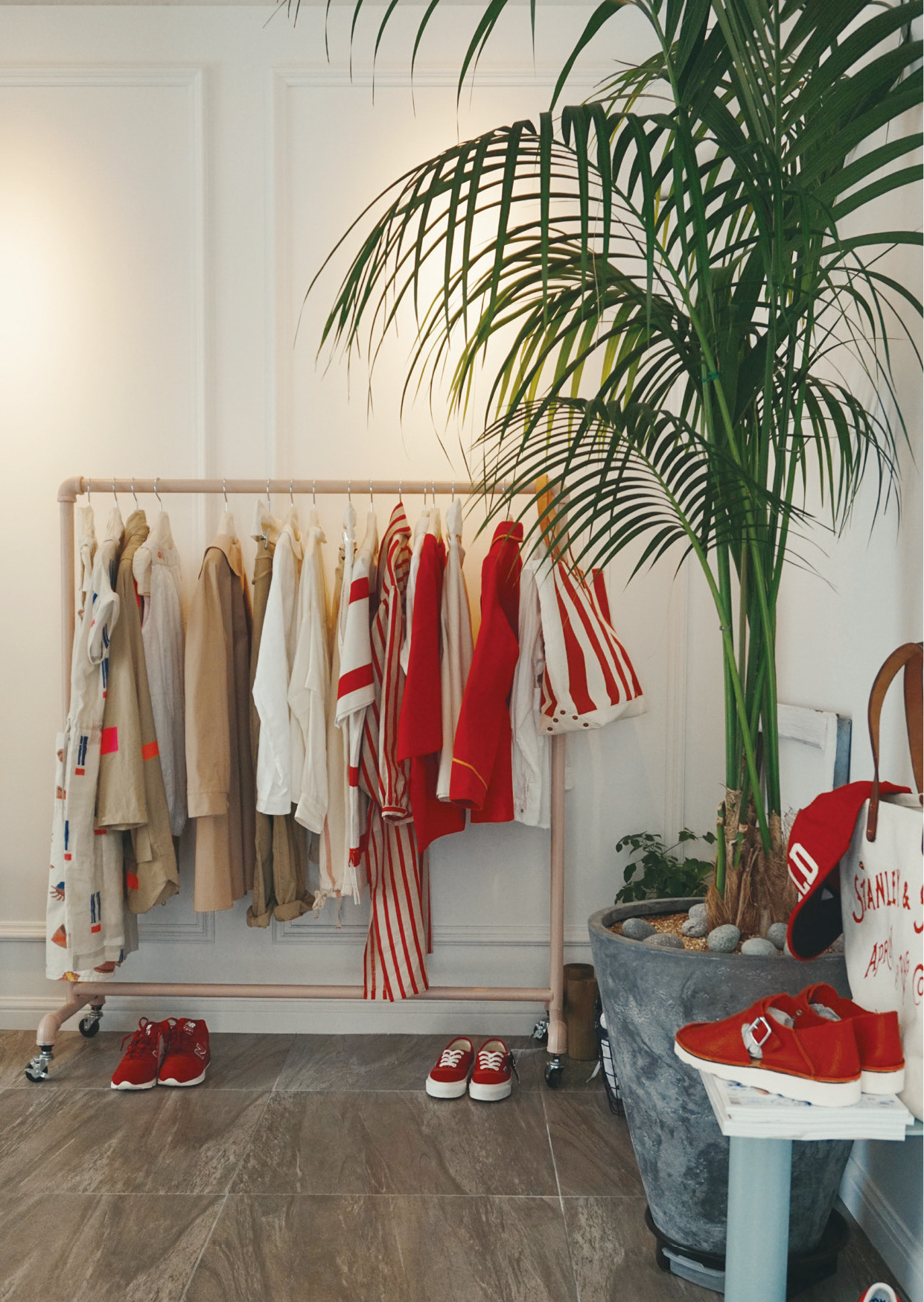 주택가 골목의 새하얀 집 ‘뮤제 드 스컬프’는 여성을 위한 편집숍이다. 좁다란 문을 열고 들어서면 쇼윈도에 진열된 선글라스와 빨강으로 포인트 된 의류들이 보인다. 각각 나누어진 구역마다 돋보이는 색이 있는데 2층으로 올라가니 요즘 날씨와 꼭 어울리는 푸른 계열의 제품들이 줄지어 있다. 중간중간 창틀이나 의자 위에 놓인 가방과 신발은 두드러지기보다는 꽃과 나무와 어우러져 오히려 조화로운 느낌이다. 그래서인지 그 수가 적지 않음에도 눈이 지치지 않는다. 물론 갖고 싶은 것들이 한데 모여 있어서 그런 것일지도 모른다. 아름다운 여자를 보는 것처럼 즐거운 시간이다.