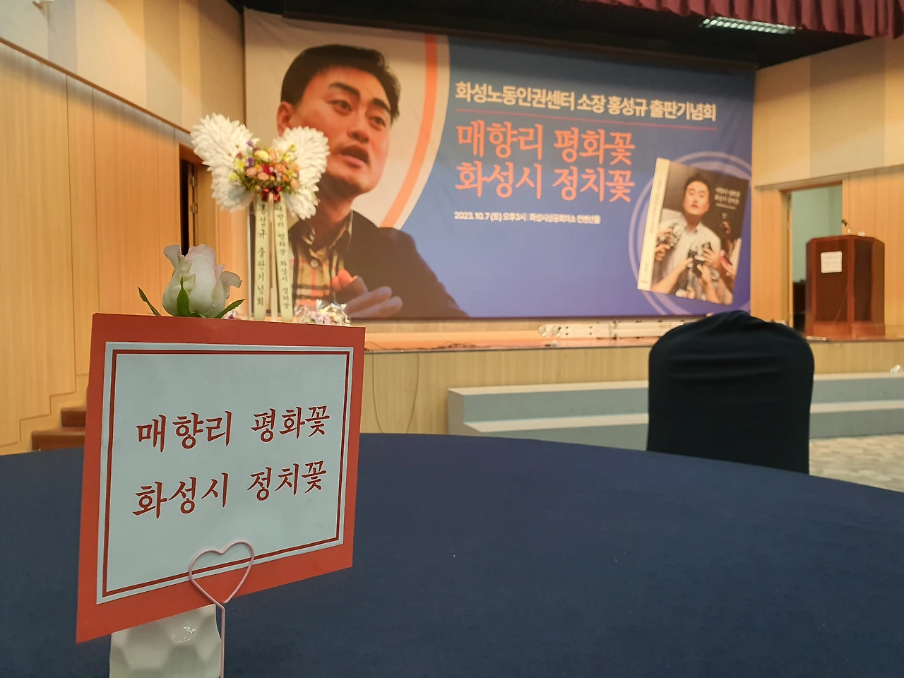 최근 주말이면 병원신세를 벗어나지 못한 탓에 1시에 잠실 한의원 일을 마치고 부랴부랴 화성 향남으로 향했다. '3시 화성상공회의소 화성노동인권센터 홍성규 소장 출판기념회'를 전화기 달력 앱에 등록을 해 놨음에도 '2시 반까지 와 달라는 요청'을 맞출 수 없었다. 향남 방향으로 가는 길은 자주 막혔던 것으로 기억나는데, 오늘은 내 급한 마음을 아는지 도로가 한산했다. 15분을 늦게 도착한 화성시 상공회의소 4층에 올라가자 이미 '출판기념회'는 진행되고 있었다.