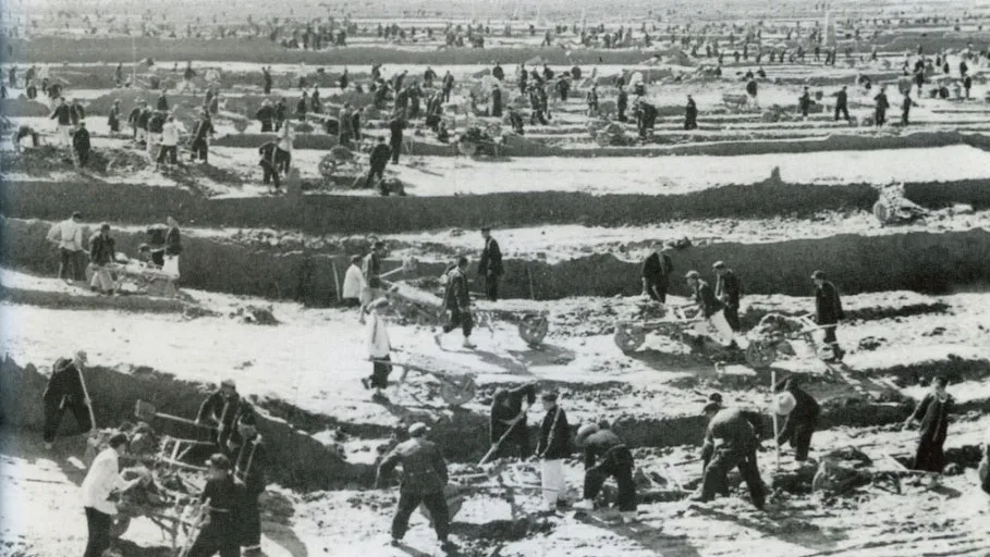 대약진운동의 핵심 과제 중 하나는 ‘토지 개간’이었다. 마오와 당 지도부는 국토를 더 많이 농사짓게 만들면 식량 문제가 해결될 것이라 믿었다. 그리하여 산을 깎고 강을 돌리며, 심지어 사막을 논으로 만들겠다는 야심 찬 계획이 수립되었다.