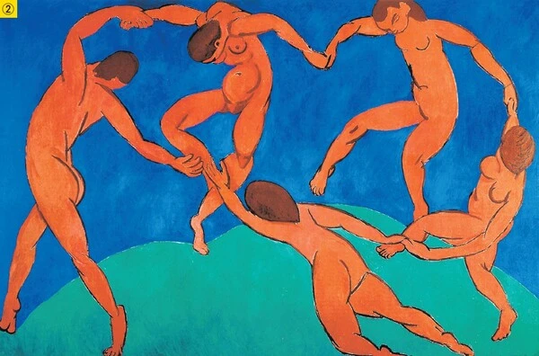 그의 또 다른 대표작 《춤》을 보자. 붉은 인체들이 원을 이루며 손을 맞잡은 이 장면은 단순한 선과 색만으로 구성되었지만, 그 안에 흐르는 에너지는 결코 단순하지 않다. 문명의 질서나 사회적 구도보다는, 더 본질적인 생명력과 기쁨을 상징하는 이 그림은 하나의 인간 군상을 넘어서 인간 존재 자체의 생기를 그려낸다. 마티스는 《춤》을 통해 예술이 고정된 이미지를 넘어서, 리듬과 에너지라는 보다 직접적인 감각으로 확장될 수 있음을 강렬하게 입증했다.