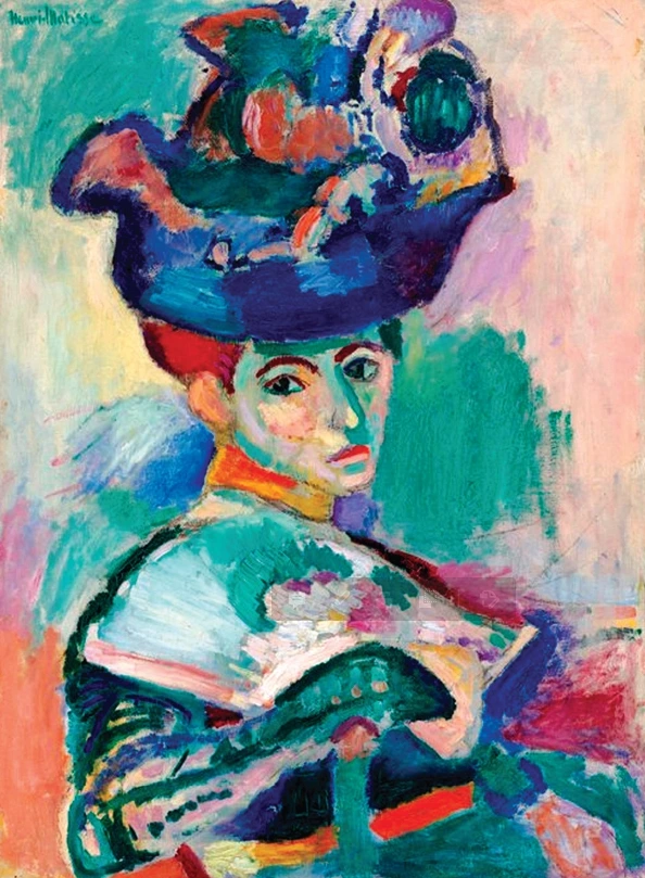 1905년, 마티스는 《모자 쓴 여인》을 발표했다. 아내 아멜리를 모델로 한 이 초상화에서 그는 얼굴을 초록과 붉은색으로 나눠 표현하며, 기존 회화의 규범을 정면으로 거슬렀다. 이 기이하리만큼 대담한 색채의 충돌은 미술계에 큰 충격을 안겼고, 마티스는 단숨에 야수파(Fauvism)의 선두주자로 부상했다. 일부 비평가들은 “야수들이 그린 듯한 그림”이라며 조롱했지만, 이 작품은 색이 현실의 재현을 넘어 감정의 진실을 담을 수 있음을 선언한 전환점이었다.