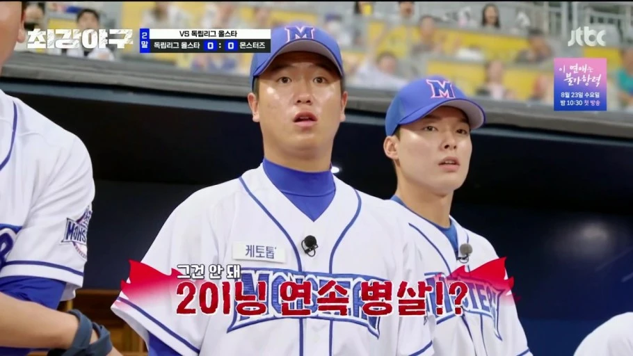 황영묵 같이 당장 프로 지명을 받지 못한 인물들에게도 최강야구는 기회의 문을활짝 열었다. 입단 테스트에서 발탁되거나 인상을 남긴 이들이 최강야구에 합류했다. 더러 천금의 기회를 놓치지 않았다. 대표적인 인물이 투수 정현수다. 그 뒤를 타자 황영묵이 이었다. 장강의 뒷물이 앞물을 앞서지 못하는 건 자연스러운 흐름이지만 스포츠에선 후배가 선배를 제치는 일이 흔하다. 최강야구처럼 퇴물이 현역 위에 올라서는 일도 앞으로는 흔히 볼 수 있을지 모른다. 어느 경우에도 영웅은 탄생하고 사멸한다. 그렇게 끝난 줄 알았던 순간에 I'll be back! 감동은 아직 끝나지 않았다.