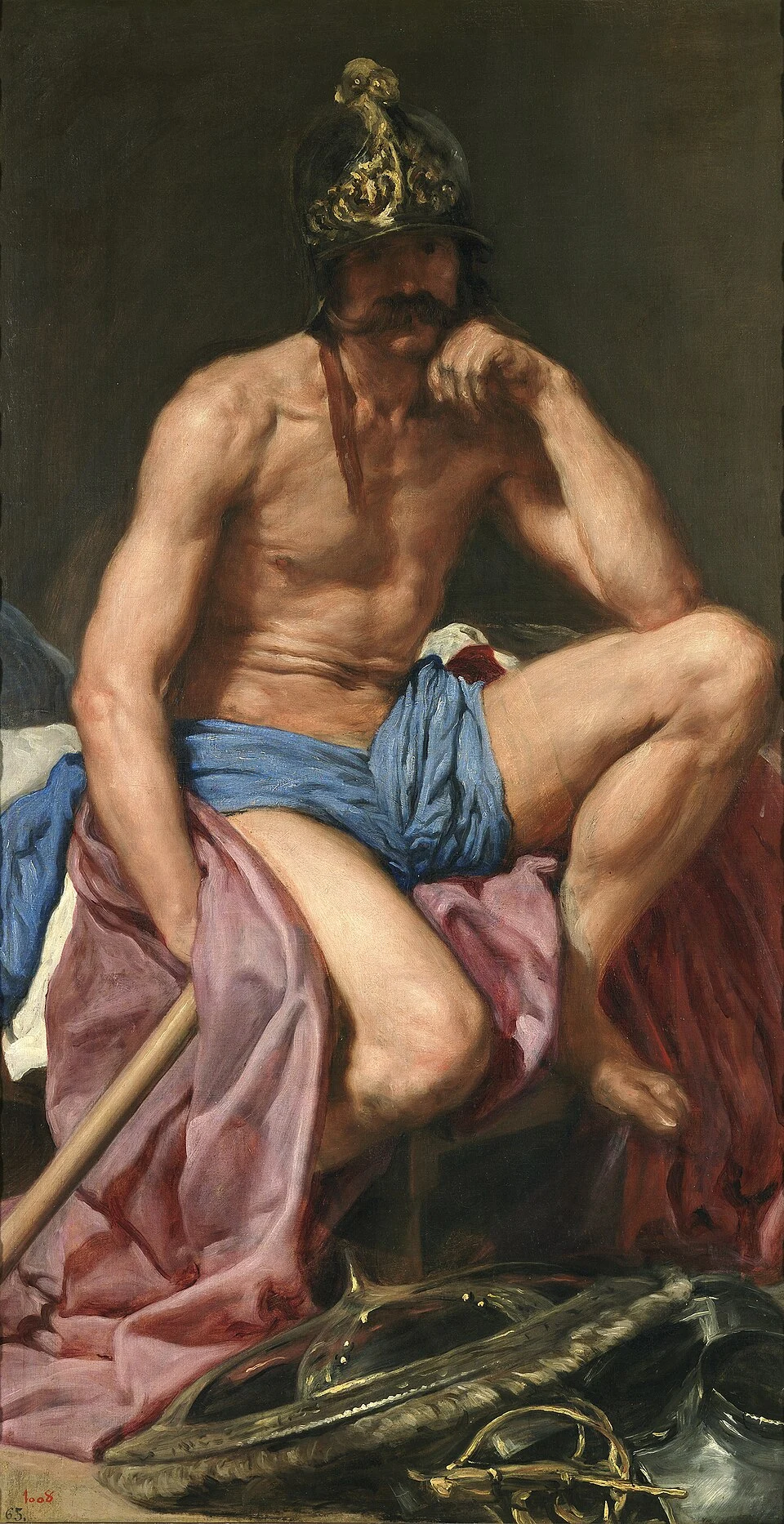 로마 신화의 전쟁신 마르스를 우스꽝스럽고 초라한 모습으로 그린 작품. 신의 영광을 벗겨내고, 피곤한 인간으로 환원하는 벨라스케스의 비틀린 시선이 두드러진다.
