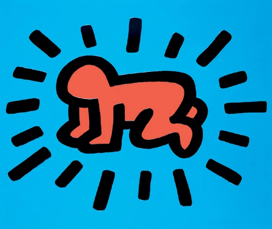 ‘춤추는 아기’는 키스 해링의 작품 세계에서 가장 반복적으로 등장하는 이미지이자, 그의 미학과 철학을 응축한 시각적 상징이다. 단순한 선과 윤곽으로 구성된 유아의 형상은 팔과 다리를 활발히 움직이며, 마치 음악에 맞춰 춤을 추듯 리듬을 만들어낸다. 이 도상에는 얼굴도 표정도 없지만, 역설적으로 그 무엇보다도 생동감과 에너지가 가득하다.